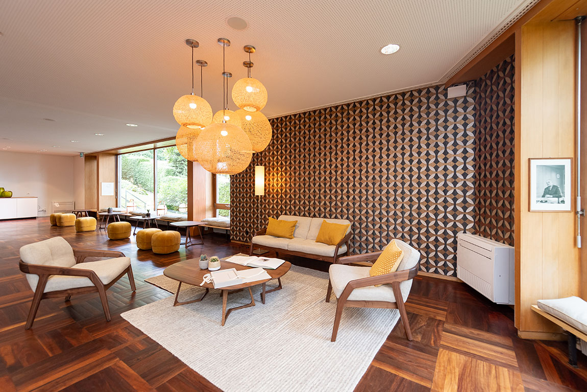Last but not least, there is the location. It is difficult to imagine a venue being situated in a more picturesque setting. Right in the midst of a spacious park, with its own pond, the view of the lake and the Alps from the rooms’ large panoramic windows offer inspiration and relaxation alike.