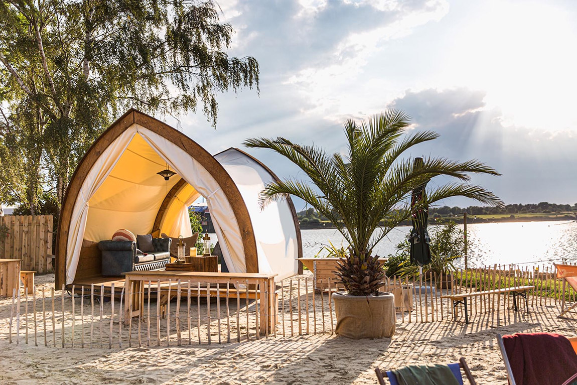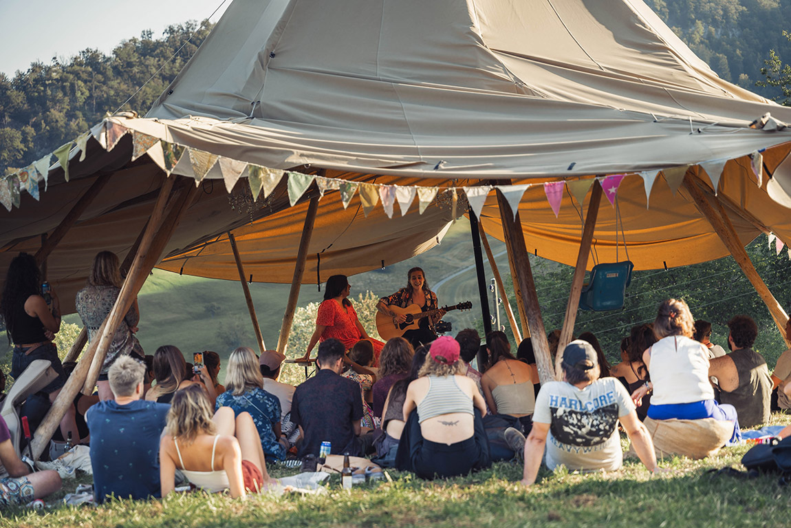Die Full-Service-Agentur bietet Bühnen aus Sekundärmaterialien und übernimmt auf Wunsch die gesamte Projektleitung – von der ersten Idee bis zum letzten Handschlag. Besonders beliebt bei Firmenkunden sind mehrtägige Outdoor-Camps inklusive Übernachtung im Grünen. Hier kommt das nachhaltige Schlafzelt zum Einsatz: hauptsächlich aus Baumwolle, wasserdicht, atmungsaktiv und wetterfest. Die Bellzelte sind geräumig, luftig und mit cleveren Details ausgestattet, die sie selbst bei engen Platzverhältnissen komfortabel nutzbar machen. Bei Hitze lassen sich die Seitenwände hochrollen – was einem das Gefühl von Träumen unter freiem Himmel gibt.