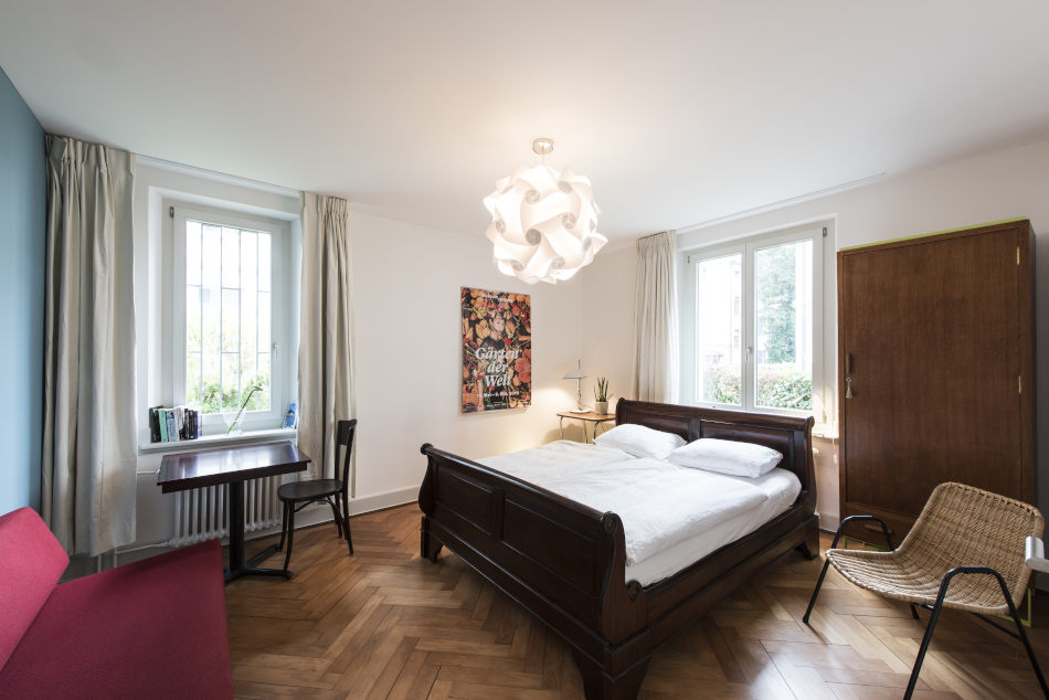 The mix of local residents and guests is a concept that has slowly found its way into Swiss and European cities and has proved to be more rewarding for both sides than hotels in many cases. Architect Daniel Jauslin reveals that it was his own extensive travelling that gave him the idea. Unable to set roots in a hotel, he mused on a way of making frequent travellers feel more at home at their destination, and thus the Parques concept in the form of an easily accessible, pop-up guesthouse project was born. The Rotterdam premises at the expansive parks of Kralingen and Rozenburg by now have been sold to a large family and the entire stylish interior was transferred to the lately restored Zurich dwelling. Here, Mascha Leummens, who already successfully managed the Rotterdam guesthouse, welcomes the curious visitor. Apart from the attraction of the stylish yet cosy interior, the incredibly green surroundings feature actual sheep, grazing at the orchard near the house. Could anything make one feel more at home in the city?