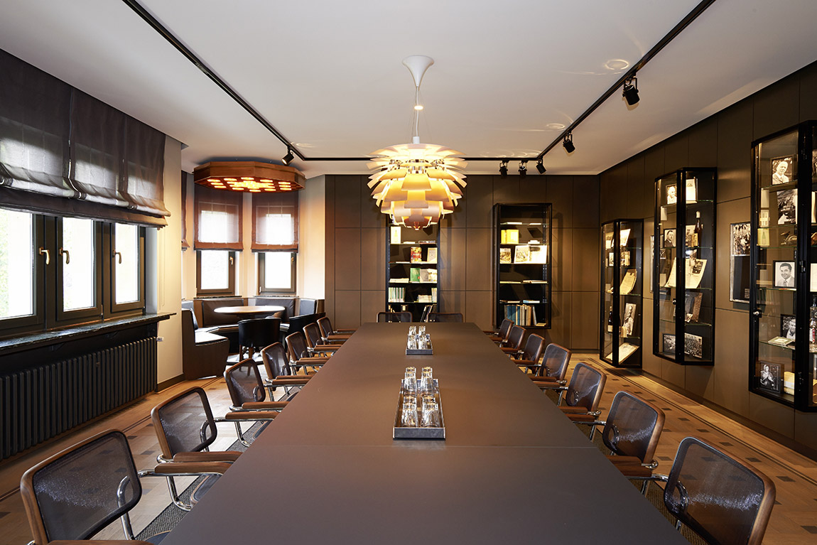 The newly designed conference room accommodates up to 18 people. Equipped with the latest technology, it is the ideal venue for lively discussions.