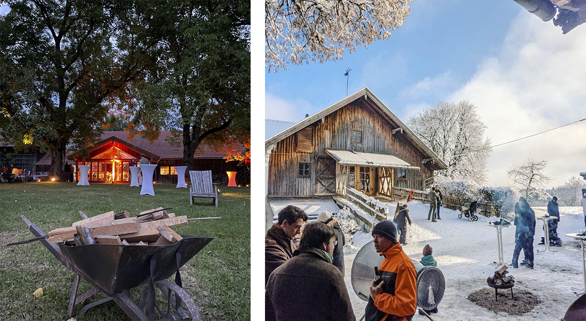 In addition to the charming interior, there are also outdoor spaces available that promise atmospheric outdoor events with campfires under the starry skies of the Bavarian Alpine region, close to Lake Starnberg.