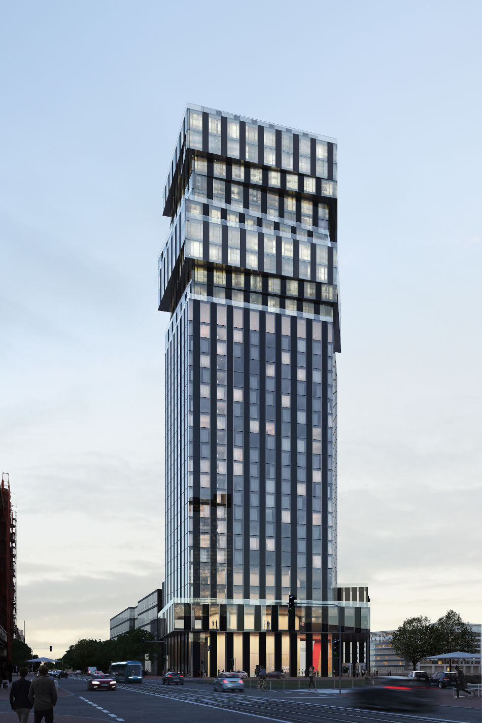 The Spin Tower high-rise is another example for the dynamic, expressionist quality of Hadi Teherani architecture. The 128-metre tower, erected within walking distance of the Frankfurt central railway station, will become the eye-catcher for an urban quarter evolving at whirlwind speed. With construction to start in 2018, one of the building plot’s special features is its direct access to the U5 underground transit line, which is going to stop right beside the building as of 2022.
