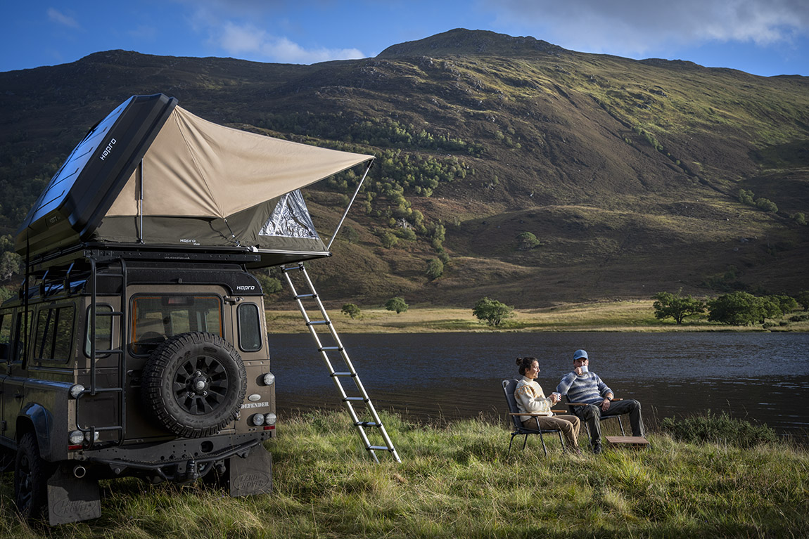 “Bei der Entwicklung unseres Dachzeltes wollten wir nicht nur die hohen Qualitätsstandards erfüllen, die wir an alle unsere Produkte stellen, sondern auch ein Premium-Produkt an der Spitze des Marktes entwickeln”, heißt es in einer Unternehmensmitteilung zur Entstehung des Dachzeltes. Zu diesem Zweck hat VDL Hapro mit dem renommierten, nie-derländischen Hersteller De Waard zusammengearbeitet, der für seine grundsoliden, sturmsicheren Qualitätszelte bekannt ist. Ein fortschrittlicher Falt- und Entfaltungsmechanismus garantiert beim Hapro Vista den blitzschnellen Auf-bau in nur 90 Sekunden, während die große Frontöffnung einen phänomenalen Panoramablick ermöglicht. Die strapa-zierfähige Baumwollplane, der großzügige Innenraum und eine luxuriöse Matratze sorgen für komfortable Nächte un-ter dem Sternenhimmel – je nach Modellgröße sogar für bis zu vier Benutzer.