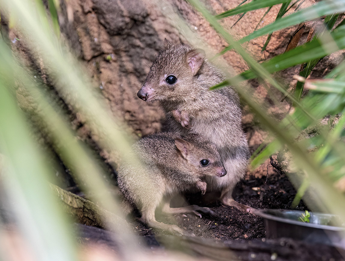 In the newly opened Australia area, some unexpected offspring has caused delight all around. In December, a small brushtail bettong baby suddenly appeared from its mother’s pouch and surprised the zookeepers. Until then, the mother had successfully kept her offspring hidden and only when the little one was old enough to leave the pouch, the secret was revealed. Since then, it has happily explored the facility and enchanted the visitors of ‘Vienna’s Australia’.