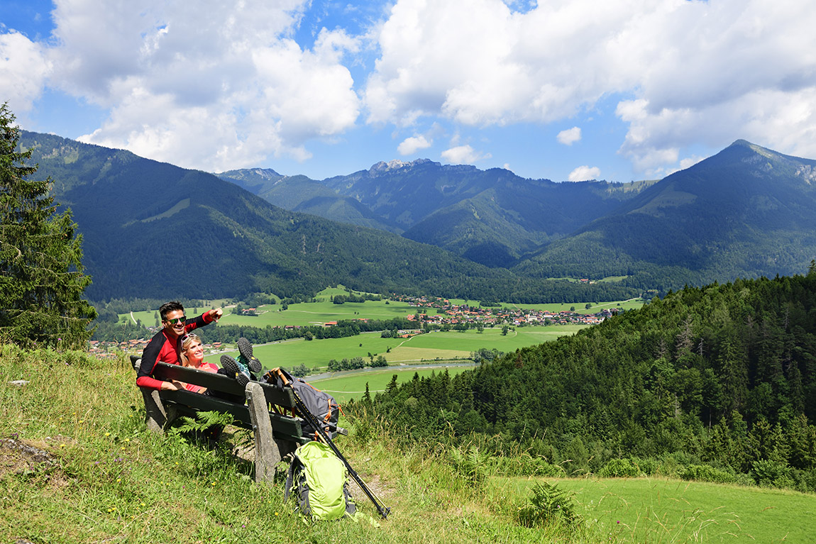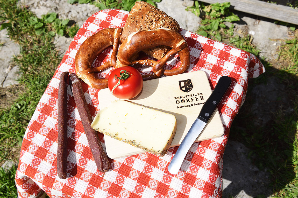 Sachrang in the Prien Valley, located at 738 metres above sea level, has also been awarded the title ‘Mountaineering Village’. It lies to the east, directly on the other side of the 1,812-metre-high Geigelstein, which connects Sachrang to Schleching. Before we set off to climb the summit, we treat ourselves to a princely mountaineering breakfast in the Sachrang village shop. All the products, from the freshly baked pretzels and farmhouse bread to the honey, jam, fine ham and smoked sausages, as well as the exuberant selection of organic cheeses made from raw hay milk, come from the region. This, too, is an important factor in its certification as a mountaineering village. A turning circle on the edge of the village, where large discount stores are clustered, certainly does not contribute to a beautiful townscape. And according to the Alpine Convention, value creation should be kept in the region wherever possible.
