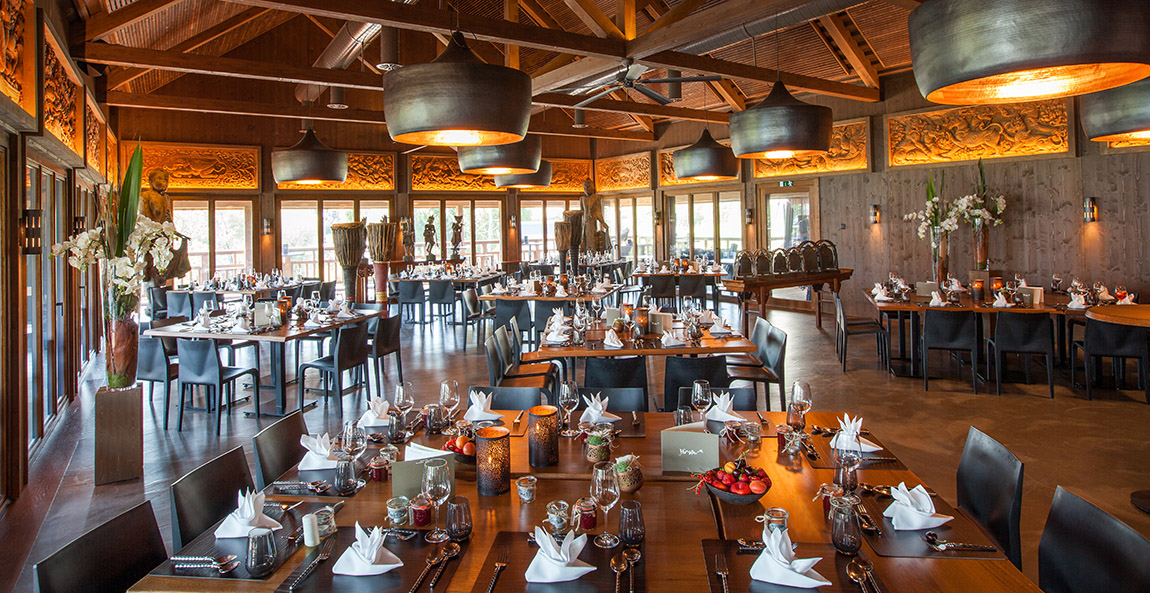 Das Hauptrestaurant beeindruckt mit einer großen Terrasse direkt am Wasser, während die Kinaree Lodge, ein stilvoller thailändischer Wintergarten, sich perfekt für kleinere Gruppen eignet. Ein besonderes Highlight ist die Thisiam Lounge, die hoch über dem angrenzenden Elefantengehege thront. „Von hier hat man einen spektakulären Blick auf die sanften Riesen”, so Franco Knie. „Bei einem leckeren Apéro ist das ein unvergessliches Erlebnis.”