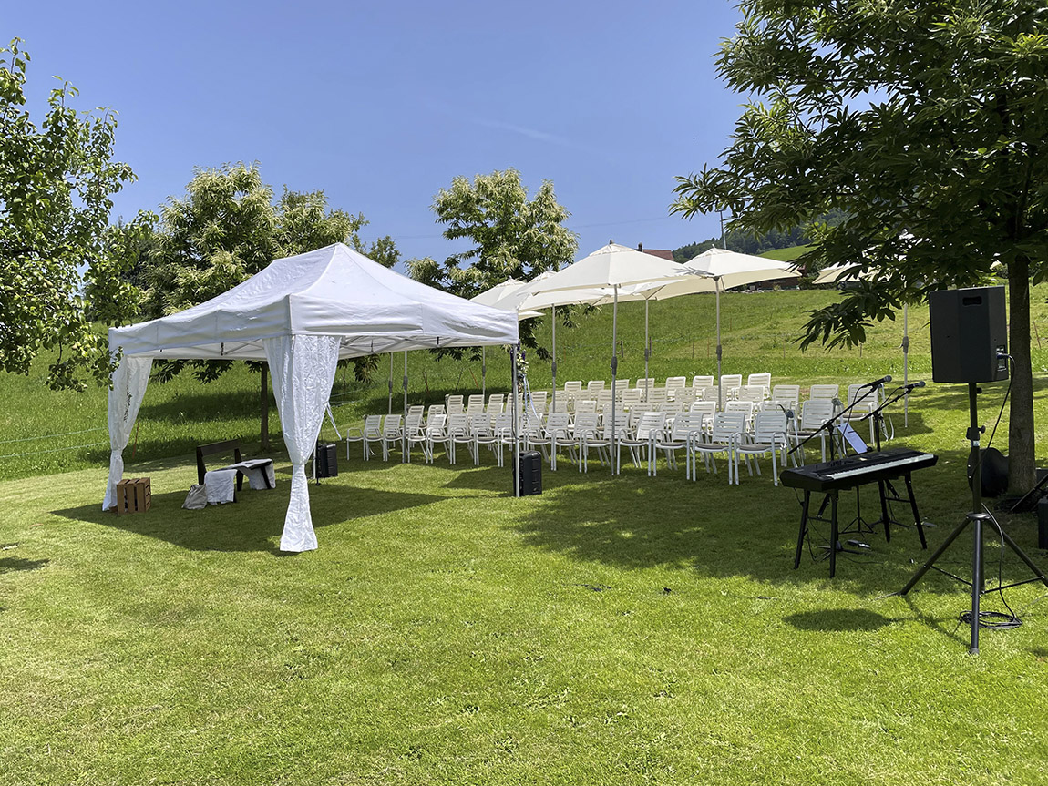 Auf dem Bauernhof Landschi können Sie Ihr ganzes Hochzeitsfest feiern. Mit 12,5 ha landwirtschaftlicher Nutzfläche bietet sich eine grossflächige Trauung an. In freier Natur das Ja-Wort geben. Das könnte Ihr perfekter Start in Ihren neuen Lebensabschnitt sein. Mit dem Blick auf den Vierwaldstättersee geniessen Sie den Apéro. Das freundliche Personal auf dem Hof bedient Sie beim anschliessenden Hochzeitsessen. Und wenn es gerne länger dauern darf, dient die Hofstube-Bar, um Drinks und Cocktails bis in die Morgendämmerung zu trinken.