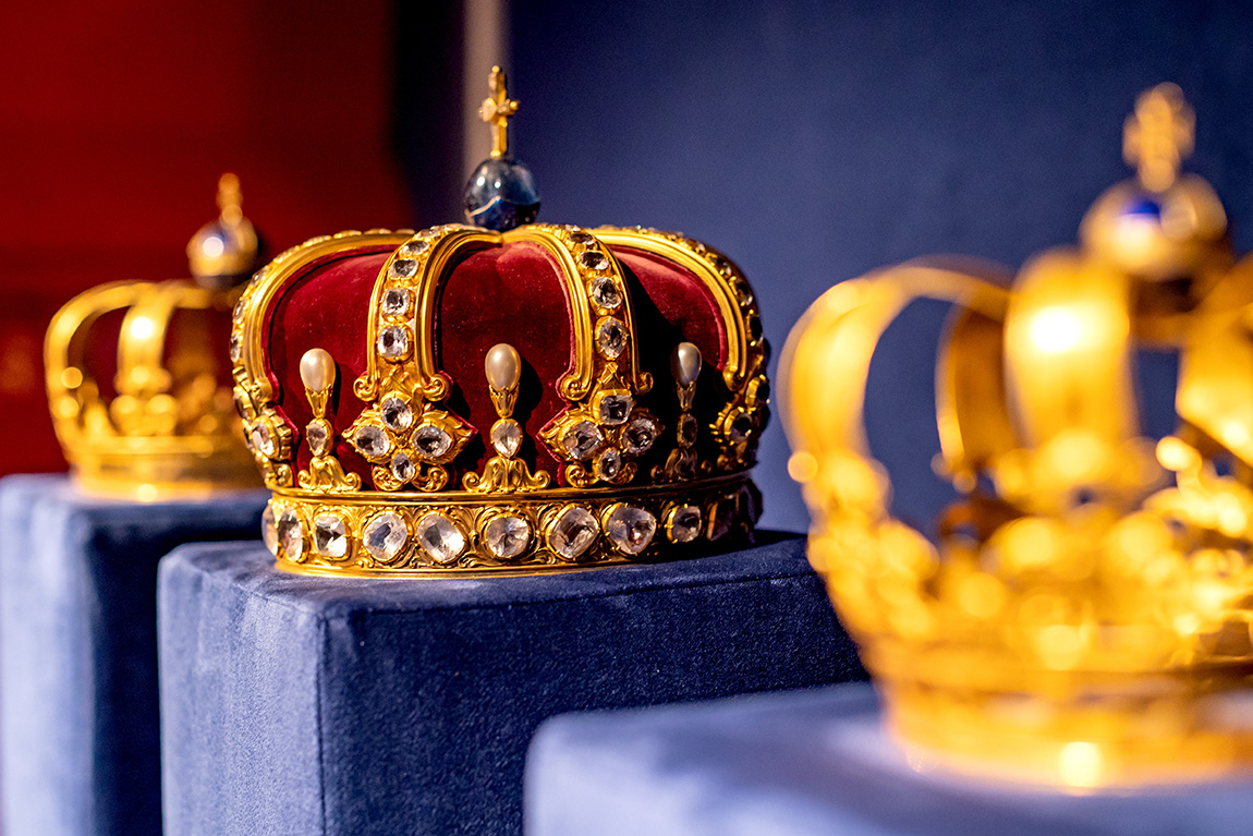 One of the eye-catchers in the treasure chamber: the Prussian royal crown from 1889, flanked by the two crown carcasses from 1701.