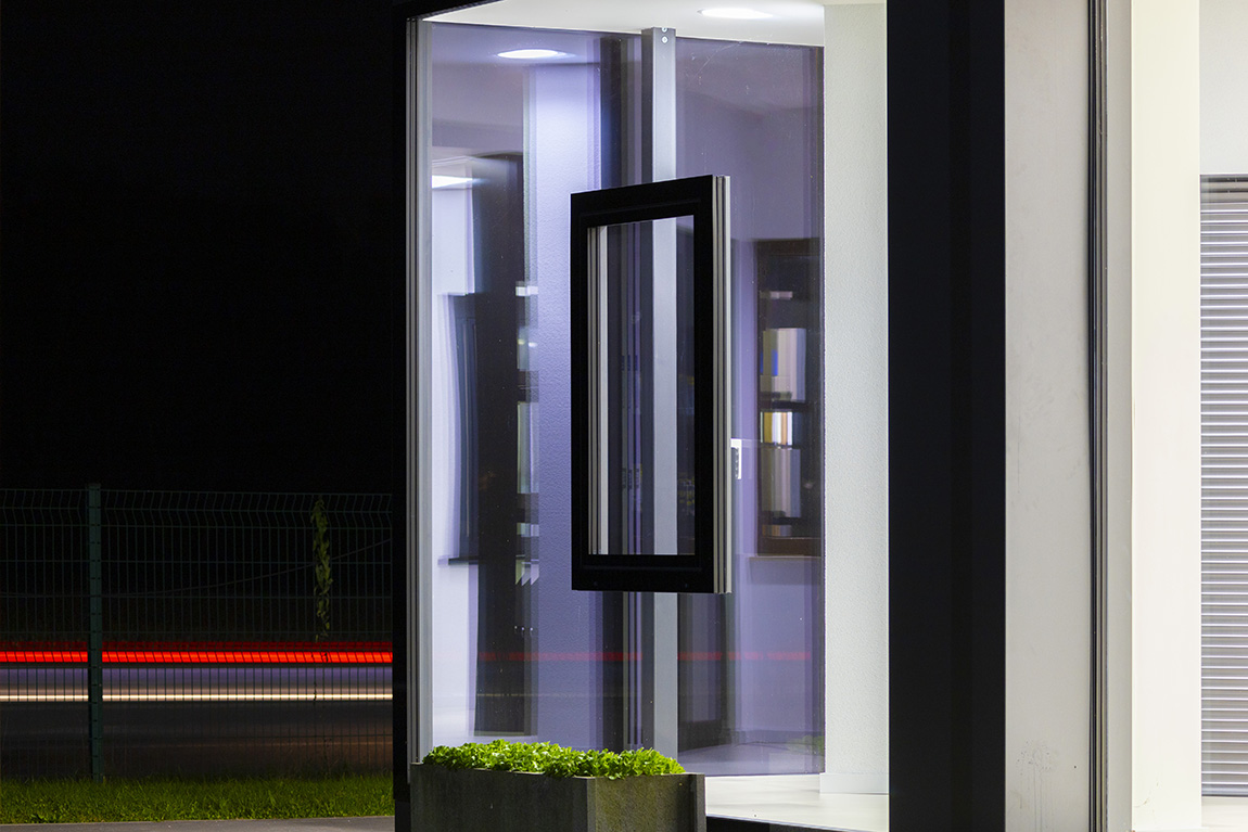 AJM has once again surprised us with the floating window. This innovation involves a window built into a glass wall, creating the illusion of it floating on the glass surface. The appearance of the window and glass wall is minimalistic, giving the impression of a continuous glass surface. Only the black enamelled edge of the window sets it apart from the glass wall. The window wing is entirely made of glass, a hallmark of the Zero Sash line.