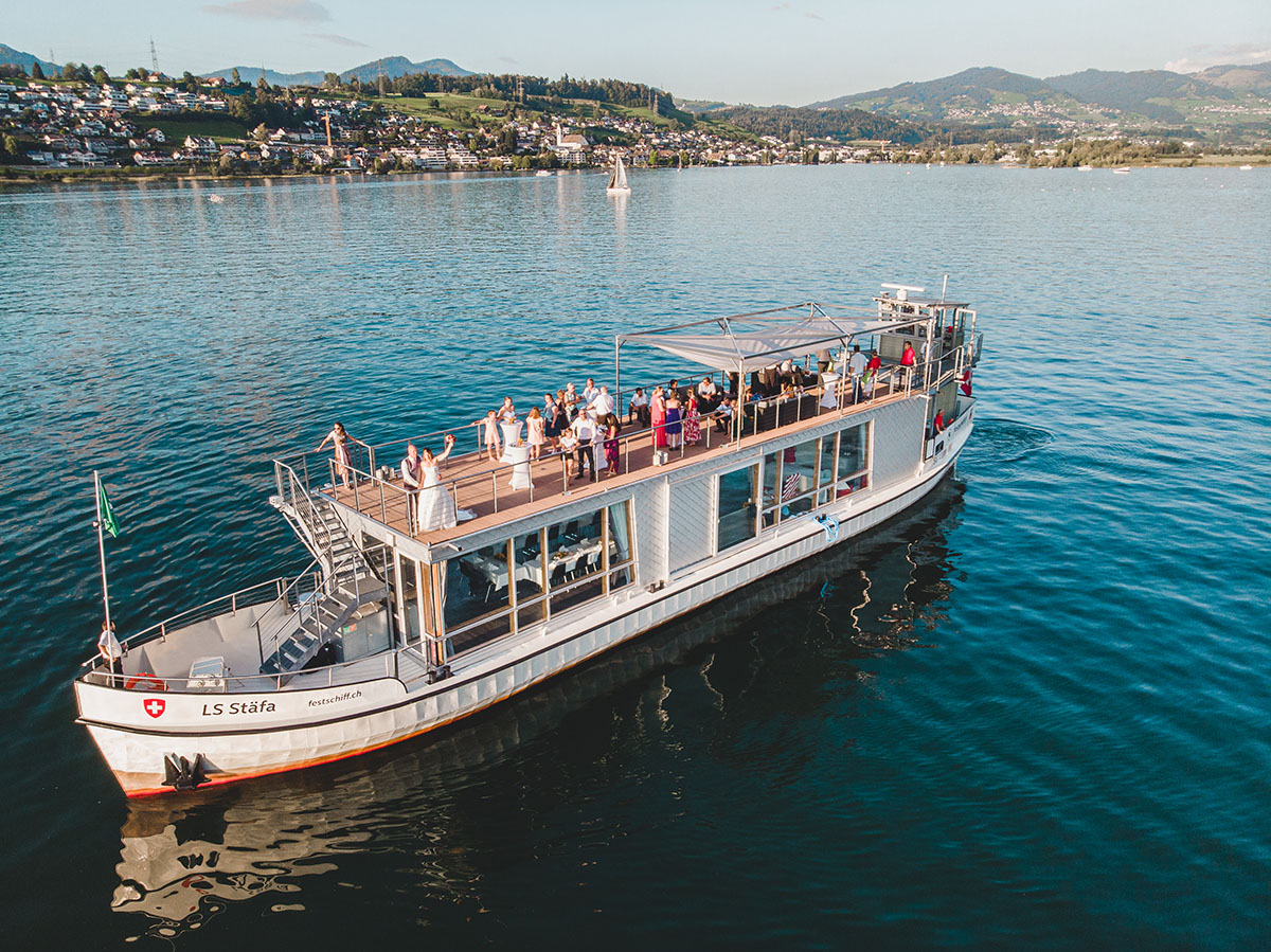 So sind den eigenen Vorlieben keine Grenzen gesetzt. Ob Catering oder Selbstverpflegungalles ist möglich. Auch die beiden Schiffe haben einen unterschiedlichen Charme: Das LS Steinschiff hat einen rustikal-gemütlichen Stil und erinnert noch ein bisschen an die vergangenen Zeiten als Transportschiff. Es ist perfekt für unbeschwerte Hochzeiten und entspannte Feiern in einzigartigem Ambiente. Das LS Stäfa hingegen besticht durch seine zeitlose Eleganz.