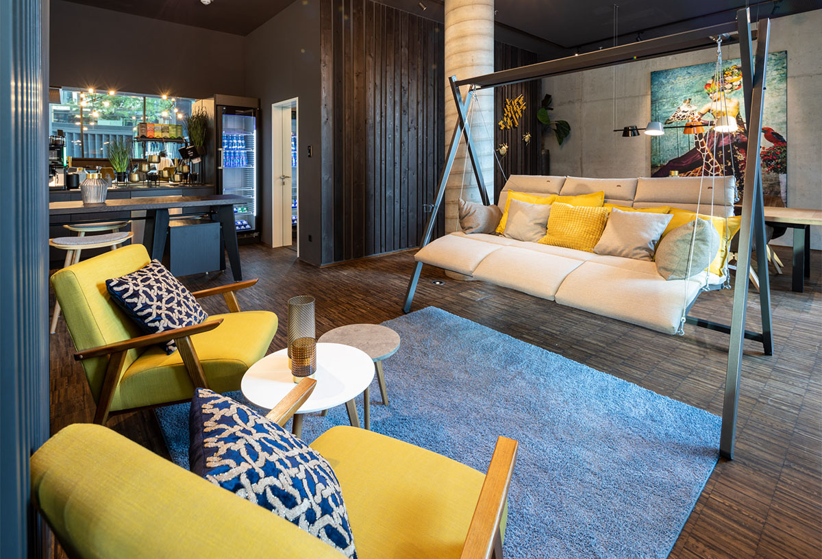 Ideal für Businessreisende sind auch die großzügigen Community- und Coworking-Spaces. Viel Raum sorgt nicht nur für ein entspanntes Arbeiten, sondern bietet auch die Möglichkeit sich mit anderen Gästen zu vernetzen.
