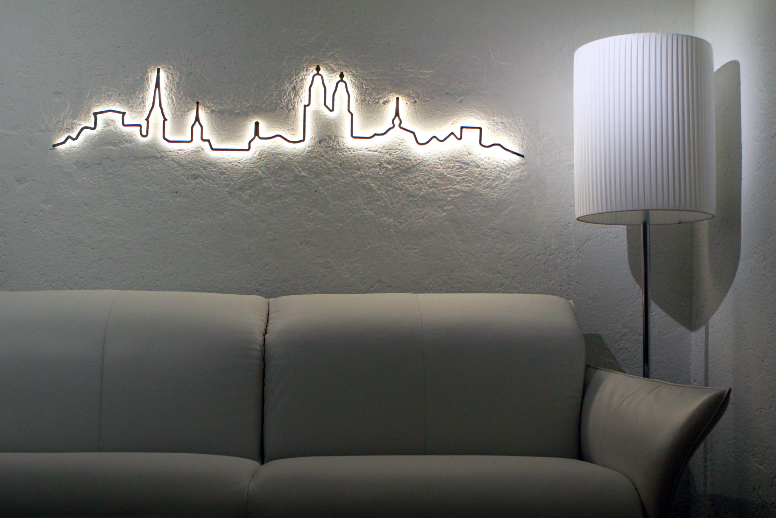 A stark and sharp outline, lighted from behind: KONTURA design fabricates wall lightings shaped like the silhouette of Swiss cities – so far Bern, Zurich, Basel, Lucerne and Fribourg. In addition to the city silhouettes on offer, KONTURA also fabricates custom-made products for hotels, practices, hospitals and private customers. “My original inspiration was our move to Bern. Our new flat had very high walls and the view from the living room window was actually not very nice: The building next door was a large concrete office building,” says designer Susanne Heinzer. Because the room did not have any light fittings on the ceiling, she had an idea that would later become a business. “We created a wall light that gave us exactly the view we wanted,” a city silhouette. The Creative Hub helped with later product development.