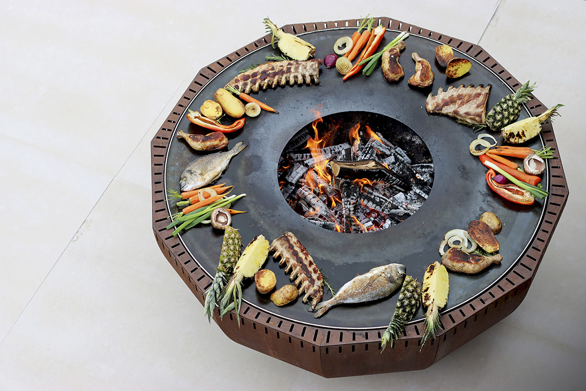 The grills or fireplaces last a lifetime and are easy to handle. Grilling is indirect, i.e. the food is placed on a steel ring while the fire is ablaze in the middle. Harmful substances have thus no chance of contaminating the food.