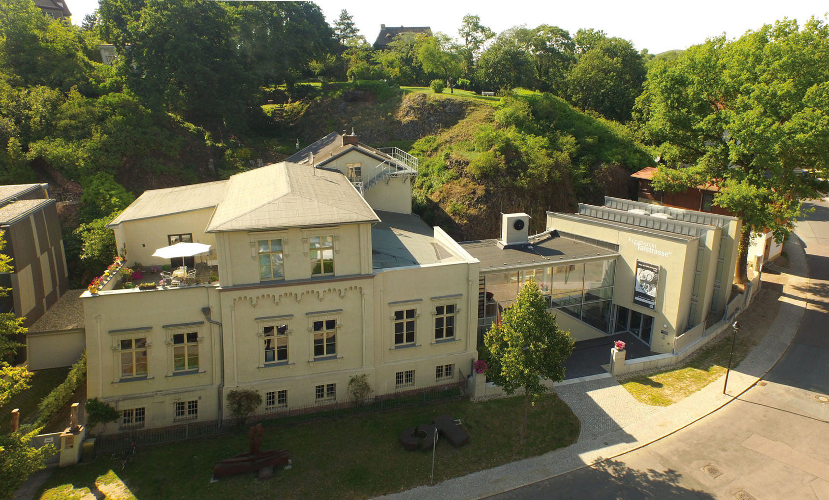In 1991, shortly after the fall of the Berlin wall, the art association Kunstverein “Talstraße” e.V. was founded.Three years later, in 1994, the society took permanent residence in a late classicistic villa near castle Giebichenstein in Halle, Saxony-Anhalt. It has since then become an art centre with regular exhibitions, readings and discussions about arts and politics.