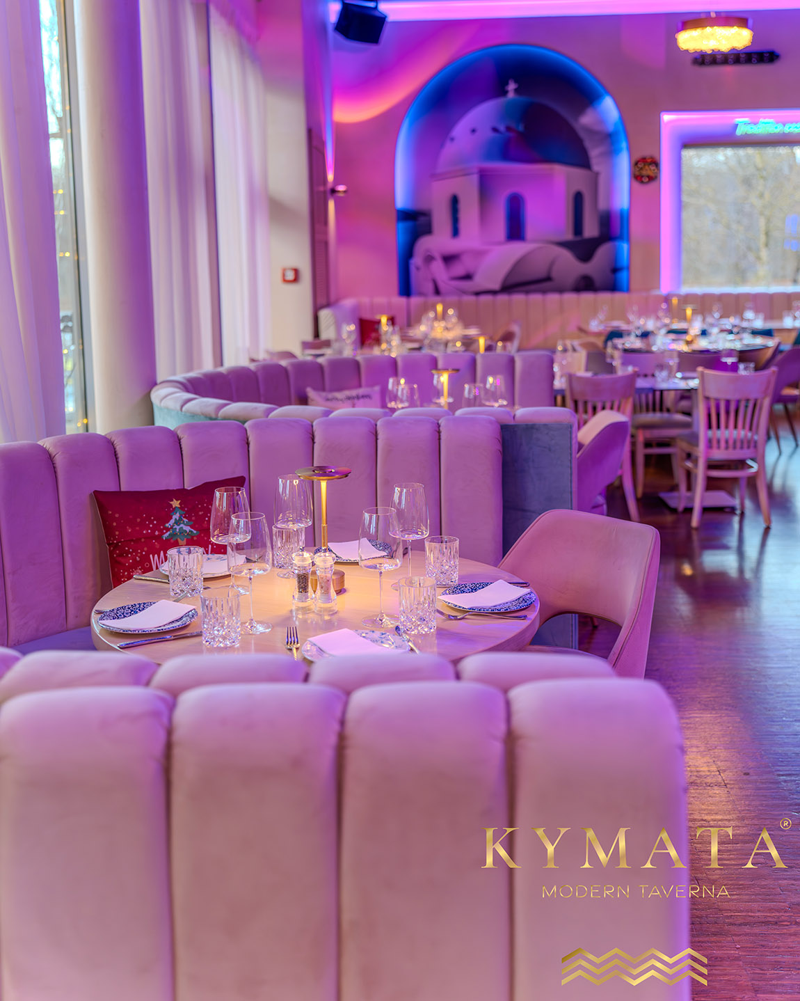 Die Location ist ideal für verschiedene Veranstaltungen – von kleinen Familientreffen bis hin zu großen Firmenveranstaltungen, der Raum passt sich jedem Bedarf an, bietet abgeschiedene Bereiche für private Dinner und ist mit modernster Technologie perfekt für Geschäftstreffen jeglicher Art ausgestattet. Dazu ist die Lichttechnik- Musikanlage ein weiteres Highlight, wie man es von den besten Clubs der Welt kennt. Denn das Kymata ist am Wochenende für seine Dinner & Dance Veranstaltungen bekannt.
