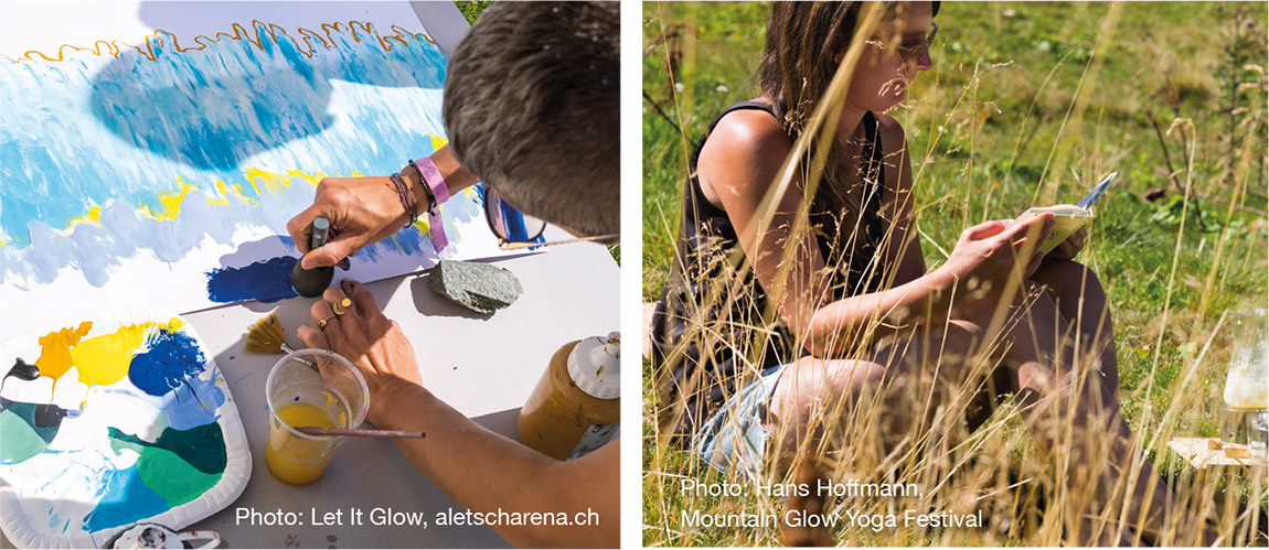 Have you heard of the Mountain Glow Festival? After it had been postponed for a few years due to the pandemic, the organisers are now looking forward to it taking place this year in the Aletsch Arena. Embedded in the fabulous nature of the UNESCO World Heritage Jungfrau-Aletsch, directly on the largest ice stream in the Alps, the yoga retreat offers the perfect setting for an exquisite programme that will include meditation and yoga at designated places of power, herb walks, painting classes, dancing and much more.