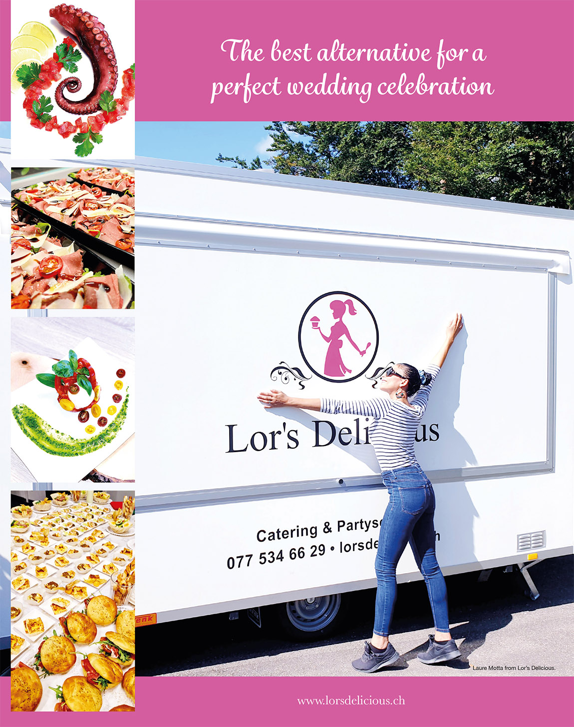 „Ich kann mich noch sehr gut an meine eigene Hochzeit erinnern. Vor dem großen Tag war unglaublich viel zu erledigen. Am Tag selbst dann war ich so erschöpft, dass ich das Fest kaum genießen konnte. Diesen Stress möchte ich meinen Kundinnen abnehmen”, so Laure Motta vom Cateringservice Lor’s Delicious.