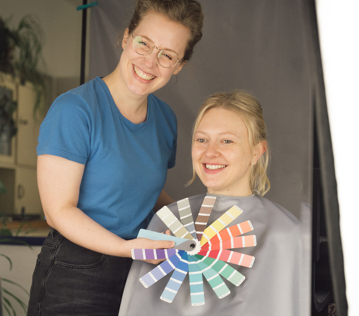 Lydia Schiller stieß während der Corona-Pandemie auf das Thema Farbberatung und war sofort fasziniert. Im Juni 2022 flog sie nach Michigan in die USA, um sich von Wildfong in der Sci\ART™ Methode ausbilden zu lassen: „Es war mir wichtig, eine systematisch fundierte Art der Farbberatung zu finden, die zuverlässige Ergebnisse liefert“, erzählt Schiller. Heute bietet sie eigene Farbberatungen von ihrem Home-Studio in der Kölner Innenstadt aus an.
