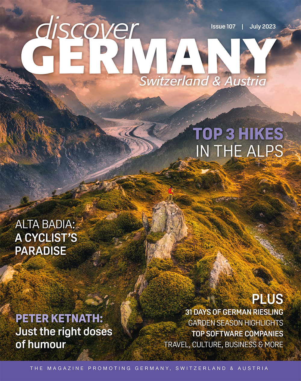 The July issue of Discover Germany, Austria & Switzerland puts a special focus on exploring the great outdoors. We cover the top three hikes in the Alps, numerous garden season highlights, as well as a special focus on Alta Badia, a cyclist’s paradise. Other highlights include an interview with actor Peter Ketnath, top Riesling wines for long summer evenings, innovative hardware brands, top software companies, Switzerland’s best agencies, great hotels, destinations, things to do, and much more.