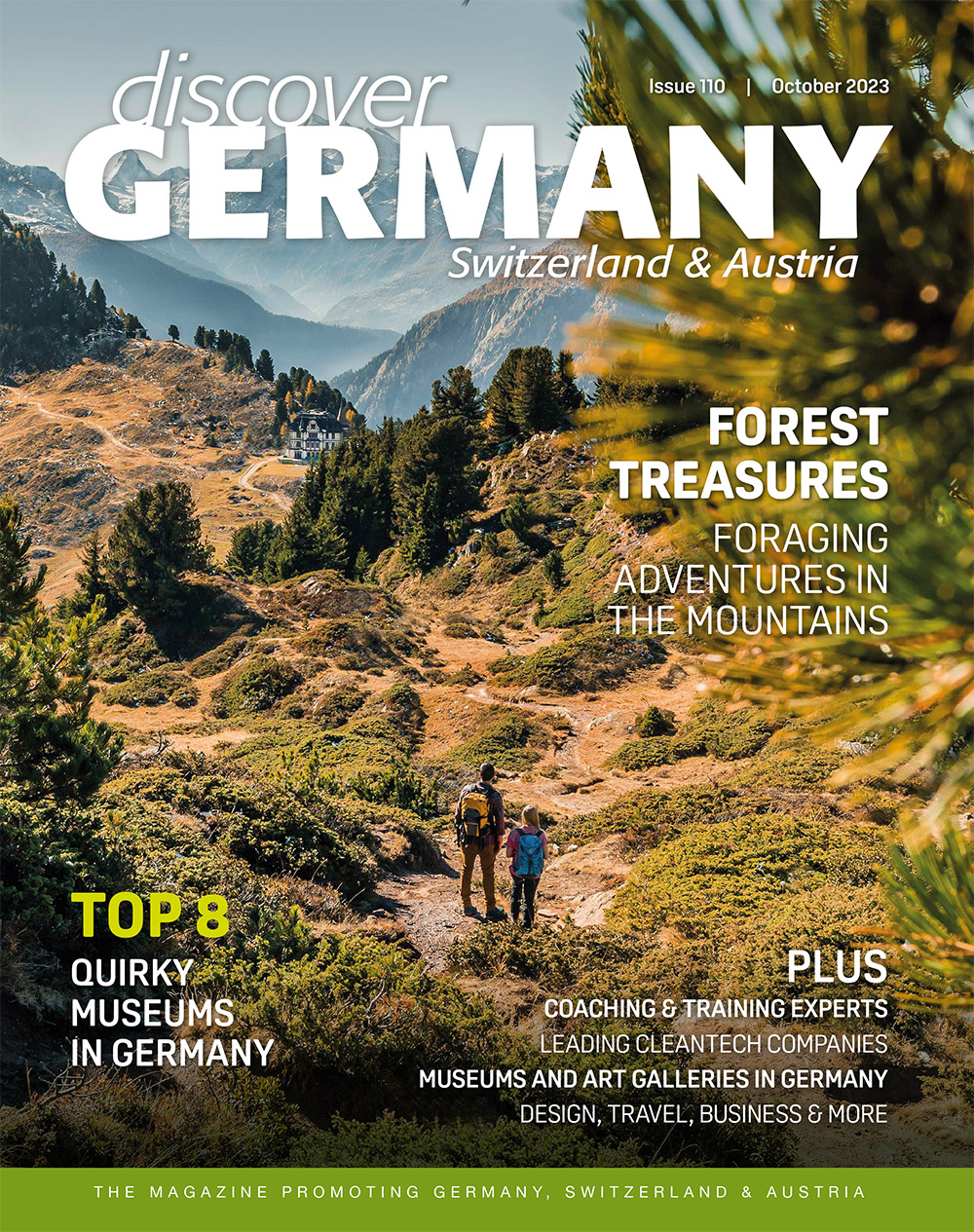 The October issue of Discover Germany, Austria & Switzerland takes you on a foraging journey through lush mountain forests. It further focuses on the coaching industry, top cleantech companies and their products, some inspiring energy and environmental companies, the most outstanding museums and art galleries in Germany, culinary highlights, and more. Other highlights include quirky museum highlights, an interview with actor Franz Dinda, and a special look at Salzburg as a winter destination.