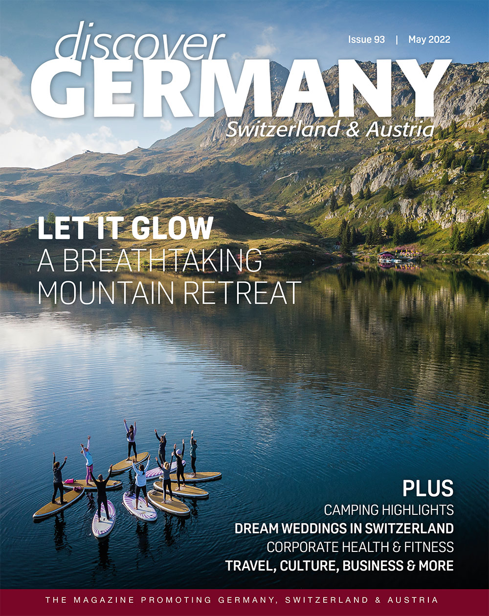 The May issue of Discover Germany, Austria & Switzerland is all about the upcoming summer. Not only does it feature camping holiday tips, interesting destinations and wonderful hotels, it also covers the Mountain Glow Festival, a yoga retreat nestled in fabulous nature overlooking impressive mountains. Other topics covered are spring fashion, an interview with actress Gizem Emre, the famous Passion Play, event locations, wedding tips and venues, franchise companies, architects, a look at corporate health and fitness and more.