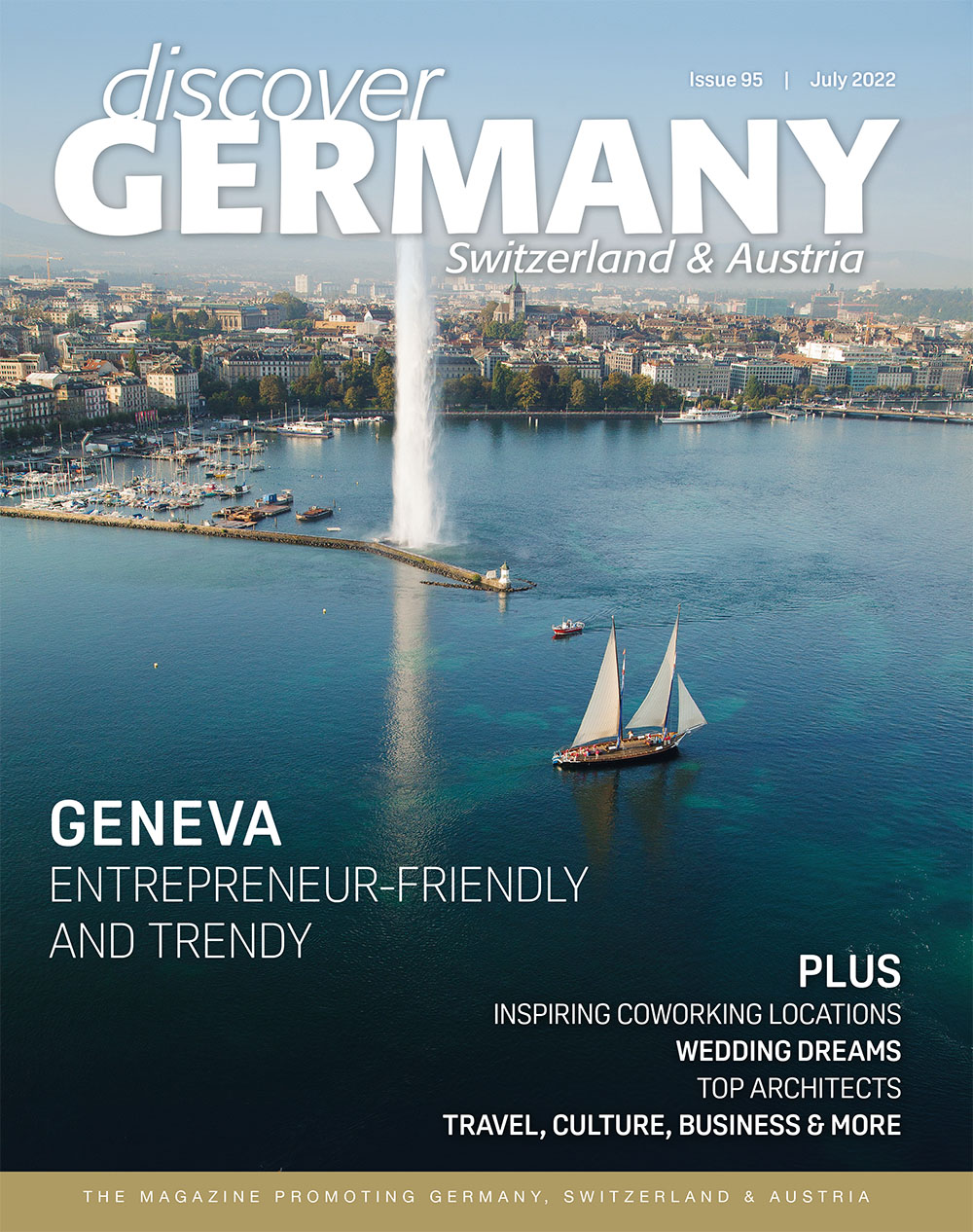 The July issue of Discover Germany, Austria & Switzerland starts off with a special focus on the beautiful city of Geneva, one of the world’s most entrepreneur-friendly cities in the world. It further includes a special theme on camping and caravanning holidays and looks at exclusively selected hotels. Other topics covered in our new July issue are an interview with actress and singer Zsá Zsá, a look at all things Riesling in our wine column, great retirement and nursing homes, wedding inspiration, inspiring coworking locations, culinary highlights from Switzerland, top German coaches, innovative architects and more.