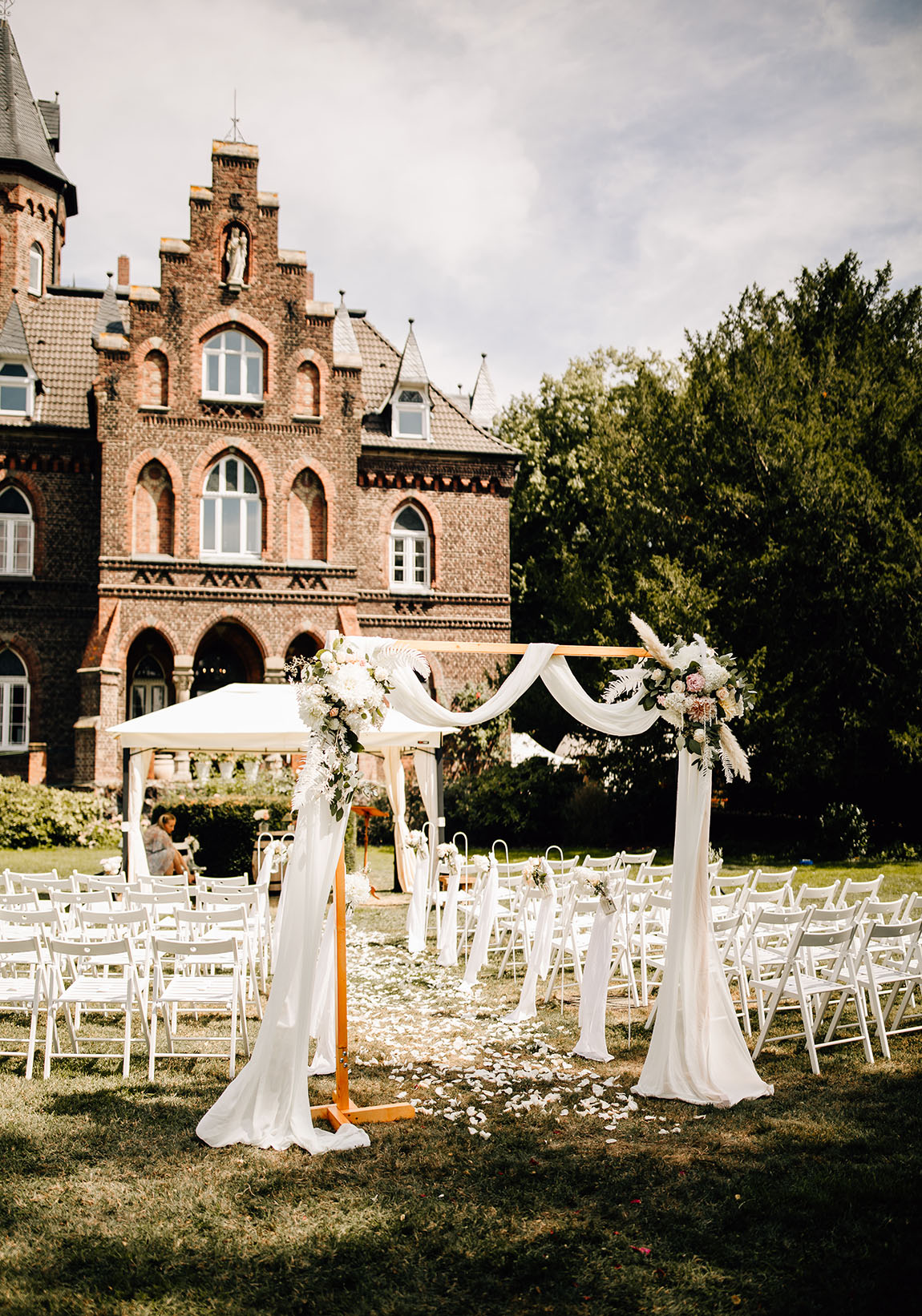 Situated in the scenic Rhineland, between Cologne and Düsseldorf, Marienburg Monheim lies on a 1.7-hectare park, whisking visitors away into a world brimming with history and culinary adventures. Constructed in 1879/80 by Eugen von Kesseler as a summer residence, the castle mirrors a captivating past. With its red brick façade, step-like gable, tower room and views of the Cologne Cathedral on clear days, the location remains as impressive as ever.