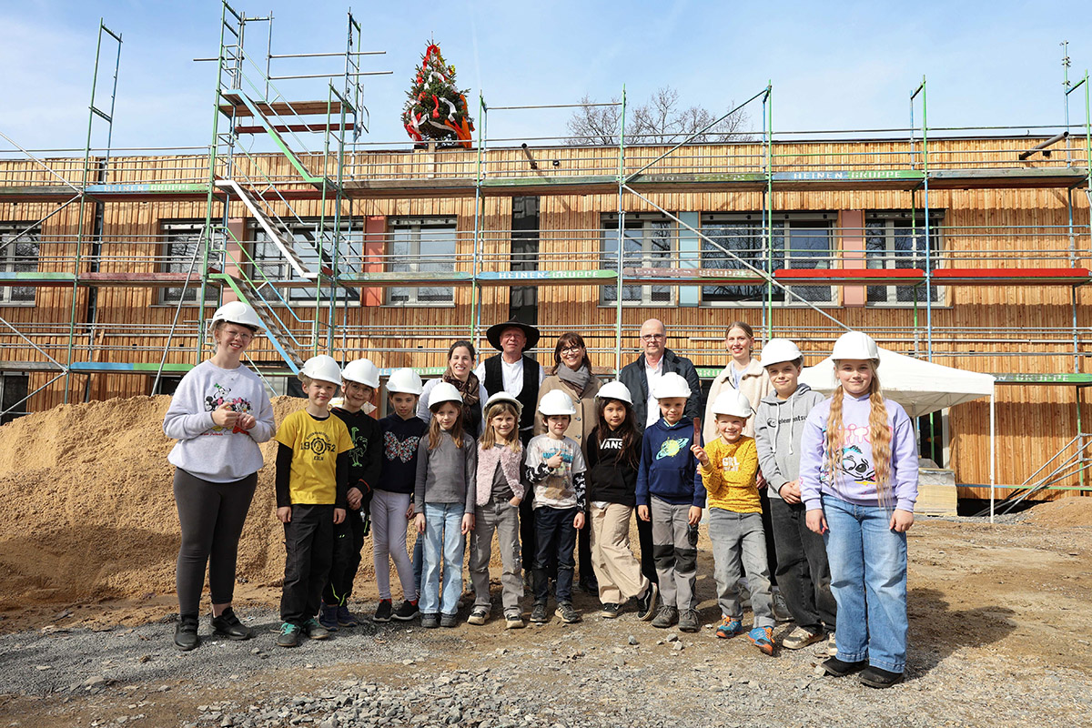 Rosenmaar elementary school, roofing ceremony for extensions in timber construction. Photo: Stadt Köln / Martina Goyert