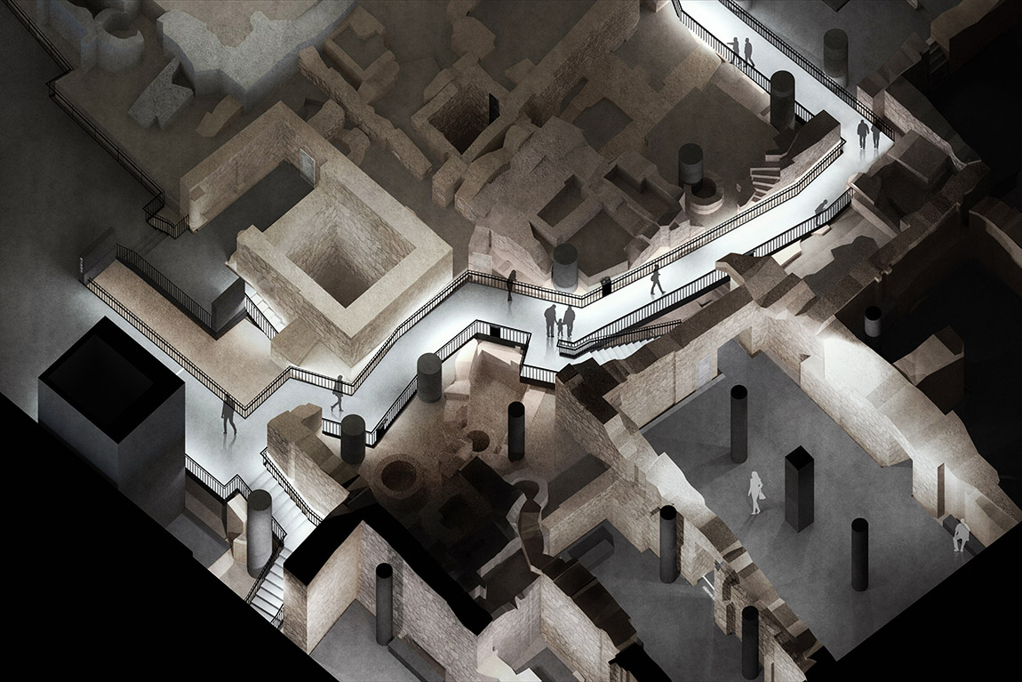 MiQua Museum, Archäologische Zone Rathausplatz Köln. Foto: Stadt Köln / Visualisierung Wandel Lorch Architekten