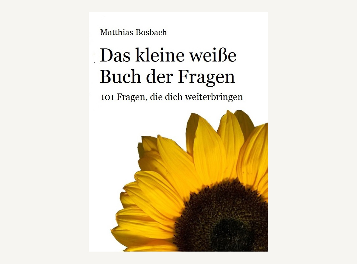 Neben seiner therapeutischen Arbeit hat Matthias Bosbach ein Buch veröffentlicht, das seinen Ansatz unterstreicht. „Das kleine, weiße Buch der Fragen“ ist eine Einladung, das eigene Leben aus neuen Blickwinkeln zu betrachten. „In meinem Studium sind mir viele gute Fragen gestellt worden. 101 davon habe ich gesammelt und in diesem Buch zusammengefasst“, erzählt er. Die Antworten kommen vom Leser selbst und machen das Buch zu einem persönlichen Werkzeug für Selbstreflexion. Besonders spannend sei es, die Antworten nach einiger