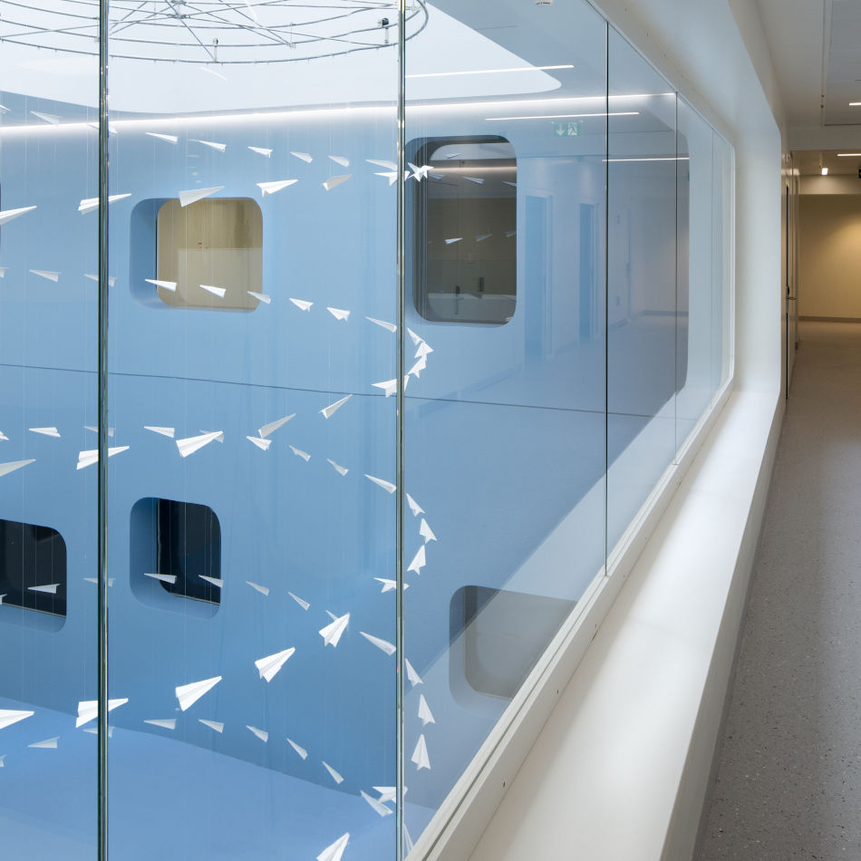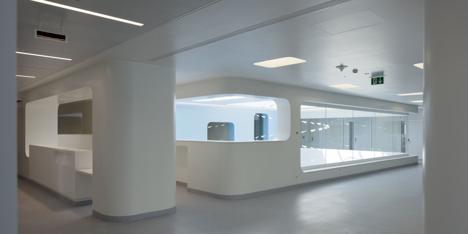 Among the recent projects the team at meier + associés architectes is particularly proud of, the three interventions made at the CHUV (Centre Hospitalier Universitaire Vaudois) deserve a special mention for their qualities in combining bold architecture and the feeling of having created something with a positive impact on society. Building the new oncological centre in particular was a great opportunity to offer the patients and staff using the building and its facilities a pleasant environment. “For people suffering from this disease, we wanted to propose something that moves them away from the classic and sometimes traumatic world of a hospital. We wanted to create an atmosphere where natural light dominates artificial light and where rounder shapes bring a softness that the usual cold and long corridors cannot offer”.