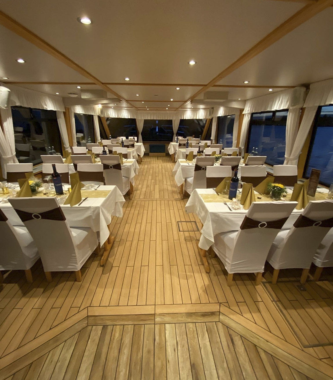 Two, three, four, five or six lake-cruises? No matter which option, the trips promise one thing above all: recreation and relaxation. For while Captain Pickran steers the ship safely through the waters the guests are looked after by the friendly team on board. They can get their fill of an ever-changing beautiful scenery or see sights such as the monastery complex and church Malchow; pass romantic hidden corners, glide through small canals. “On the tours that start here in Malchow guests will also get a look a the swing bridge that opens the route to the Fleesensee,” adds Captain Pickran.