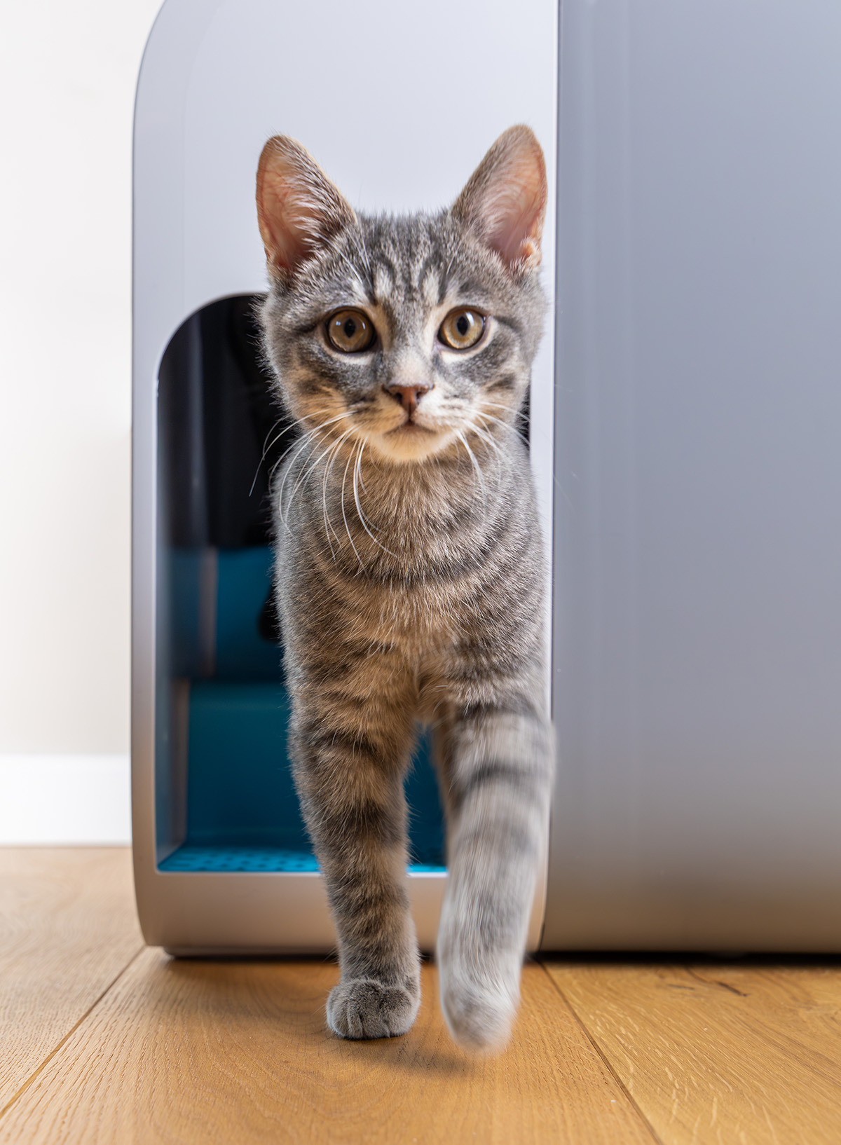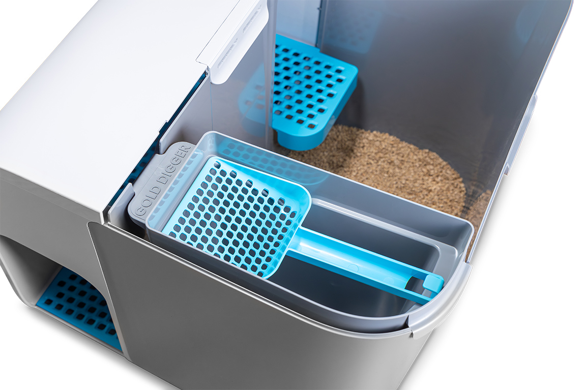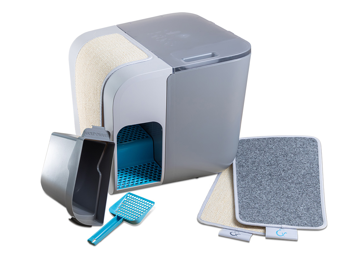 „Cloou sieht nicht nur gut aus, sondern bietet auch viele Vorteile: Dank der eingebauten Streuauffangtreppe bleibt Schritt für Schritt weniger Streu an den Katzenpfoten kleben, sodass keine Streu mehr in der Wohnung verteilt wird. Entsorgungsbehälter und Streuschaufel sind ebenfalls integriert, sodass alles benötigte Zubehör unter einem ästhetischen Dach verstaut ist. Zudem ist die Toilette katzengerecht gestaltet: Eine hohe Wanne und angenehme Lichtverhältnisse in der Box bieten den Katzen eine echte Wohlfühlatmosphäre.”