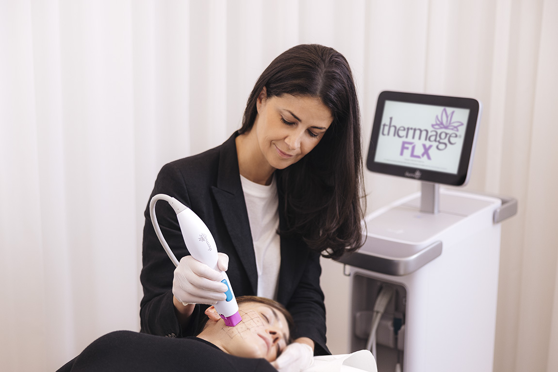 Eine der beliebtesten Behandlungen im Moser Milani Medical Spa ist Thermage FLX®. „Dabei handelt es sich um ein Verfahren, das ein Lifting des Gesichts oder des Körpers ohne chirurgischen Eingriff oder Ausfallzeiten ermöglicht”, erklärt die Expertin. „In nur einer Sitzung strafft Thermage FLX® die Haut und definiert die Konturen neu. Für einen individuellen Behandlungsplan entscheide ich, welche Behandlungen für meine Patientinnen und Patienten am besten geeignet sind. Manchmal ist eine zusätzliche Verfeinerung der Hautqualität notwendig. Um die Poren zu verfeinern, Pigmentstörungen zu lindern und Unregelmäßigkeiten zu reduzieren, führen wir dann eine zweite Sitzung mit dem Clear + Brilliant™ Laser durch. Dies bereitet die Haut auf die passenden Wirkstoffe vor, die der Haut ihre jugendliche Ausstrahlung zurückgeben.”