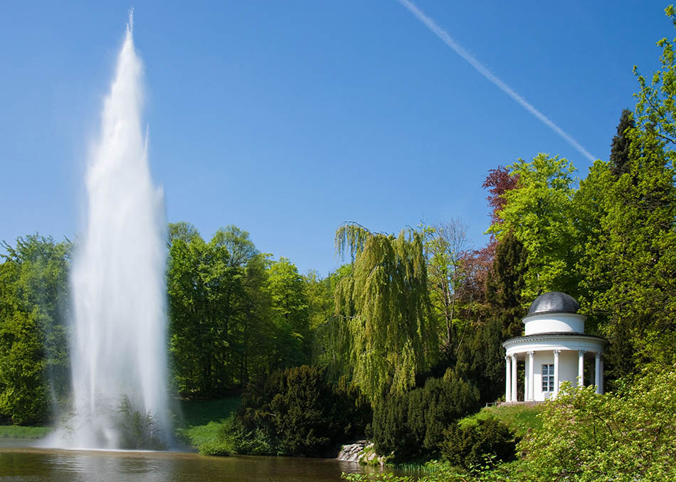 So zum Beispiel die legendären Wasserspiele, die ein wahrer Besuchermagnet sind und als zentrales Element des Parks ebenfalls ausschlaggebend für dessen Ernennung zum UNESCO Weltkulturerbe waren.
