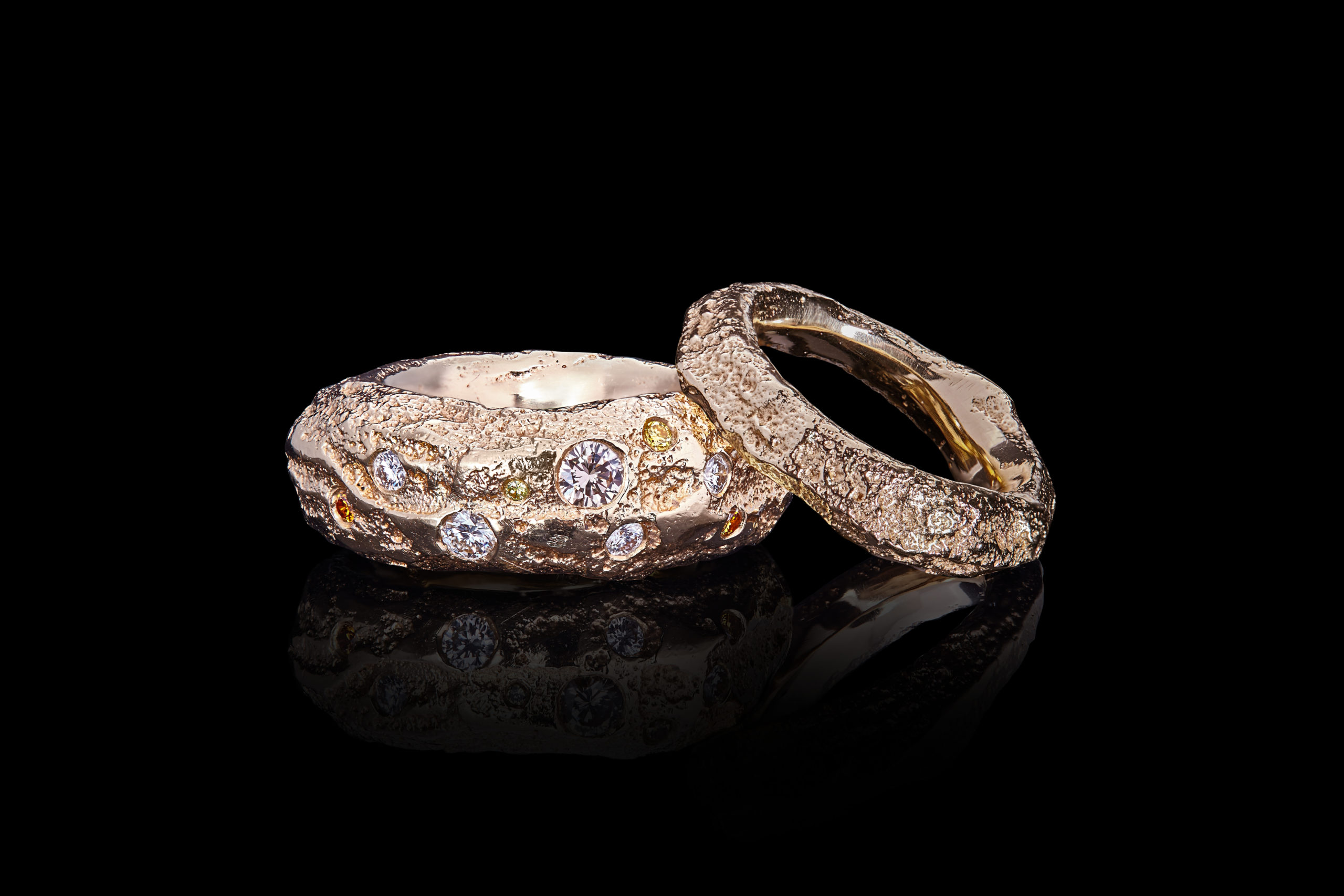 “I create my jewellery pieces for people with courage, for those with exceptional spirit and love for life. Free, wild and of magical beauty.” This is how gold caster Nicole Grob puts her work in a nutshell. Nicole Grob has always had two dream jobs: archaeologist and goldsmith. Today, she combines both. In her studio in Rapperswil at Lake Zurich, she creates creative jewellery pieces from earth’s most precious treasures – with a long forgotten, ancient gold work technique. The gold caster explains: “My creations have a unique, distinctive signature as I work with the 5,000-year-old goldsmith technique of fire casting that is barely used today.” During fire casting, gold gets melted in the open fire and then poured into a hollow form that was prepared by hand.
