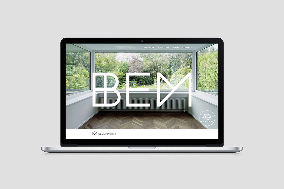 Klar, streng und doch verspielt: Logo- und Interaction Design für BEM Architekten AG.