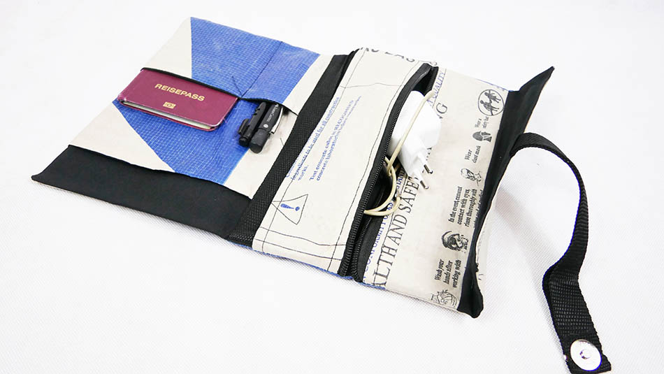 Jedes Stück der Kollektion aus wasserabweisenden, ultraleichten und strapazierfähigen Taschen und Accessoires ist ein Unikat. Es wird von einer Schneiderin von Anfang bis Ende gefertigt und mit ihrem Namenslabel versehen. „Das Label macht jedes Stück zu etwas Persönlichem und verbindet so Menschen über die Kontinente hinweg.“