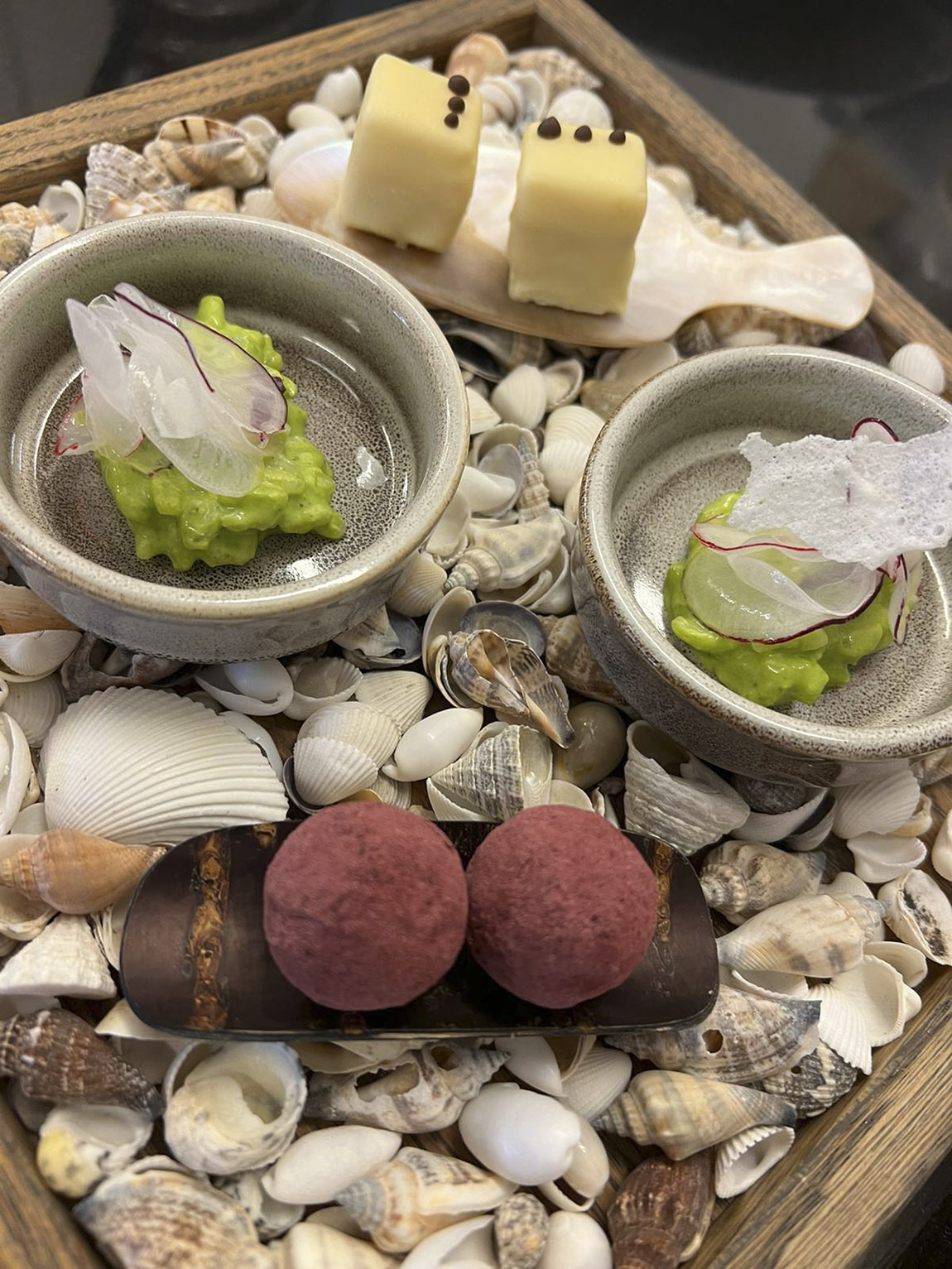 This innovative concept creates extraordinary dishes like bay zander, which is very naturally served with fregular sarda, a Sardinian pasta, artichokes and peppers. The chefs, of course, also offer vegan or vegetarian options by prior request.