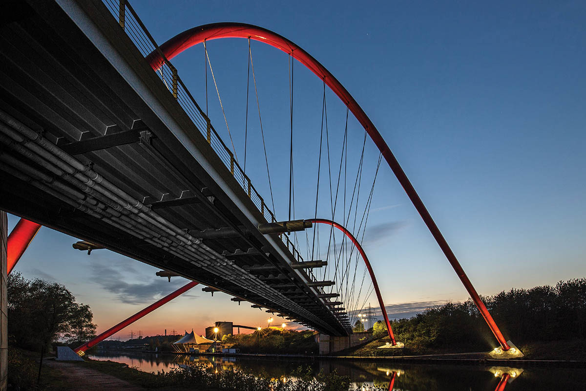 Construction of a double-arched bridge in Nordsternpark in Gelsenkirchen.