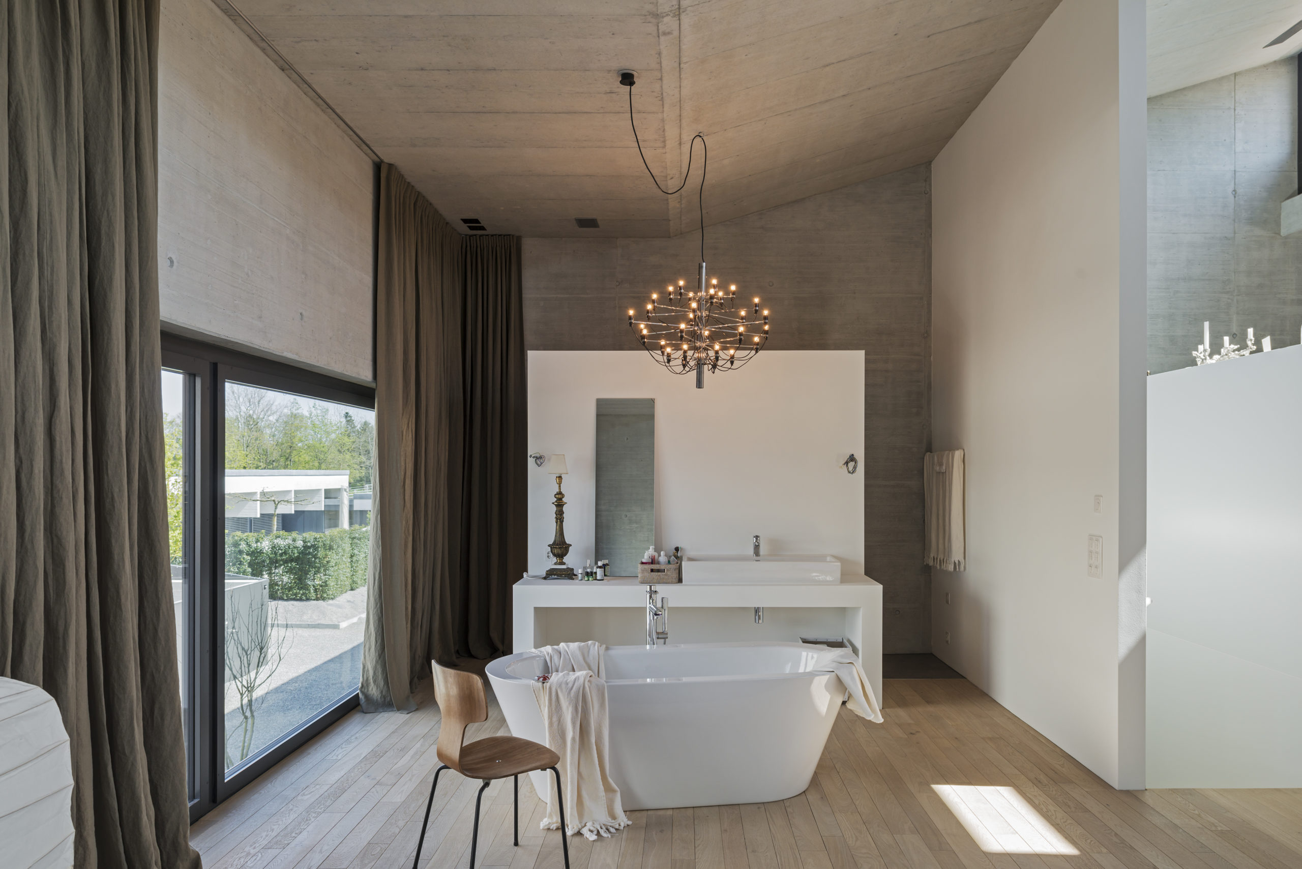 When it comes to architectural photography, for Pit Brunner, depicting the shell that society chooses to live in means depicting society itself. “Our constructed environment,” he says, “is the exact expression of our society.” In his opinion, there are “many capable photographers as well as architects around”, so when Pit Brunner takes pictures of buildings, he tries to stick to the simple facts – to “What Is”. Calm perspectives, clear-cut pictures taken from a potential observer’s eye level, the houses and their connection to the surroundings, the gaps, the spacial interactions: Pit Brunner sees potential in everything, even in “disturbances” or obstacles like cleaning personnel performing their nal tasks before hand-over, moving boxes, or tools left behind by craftsmen.