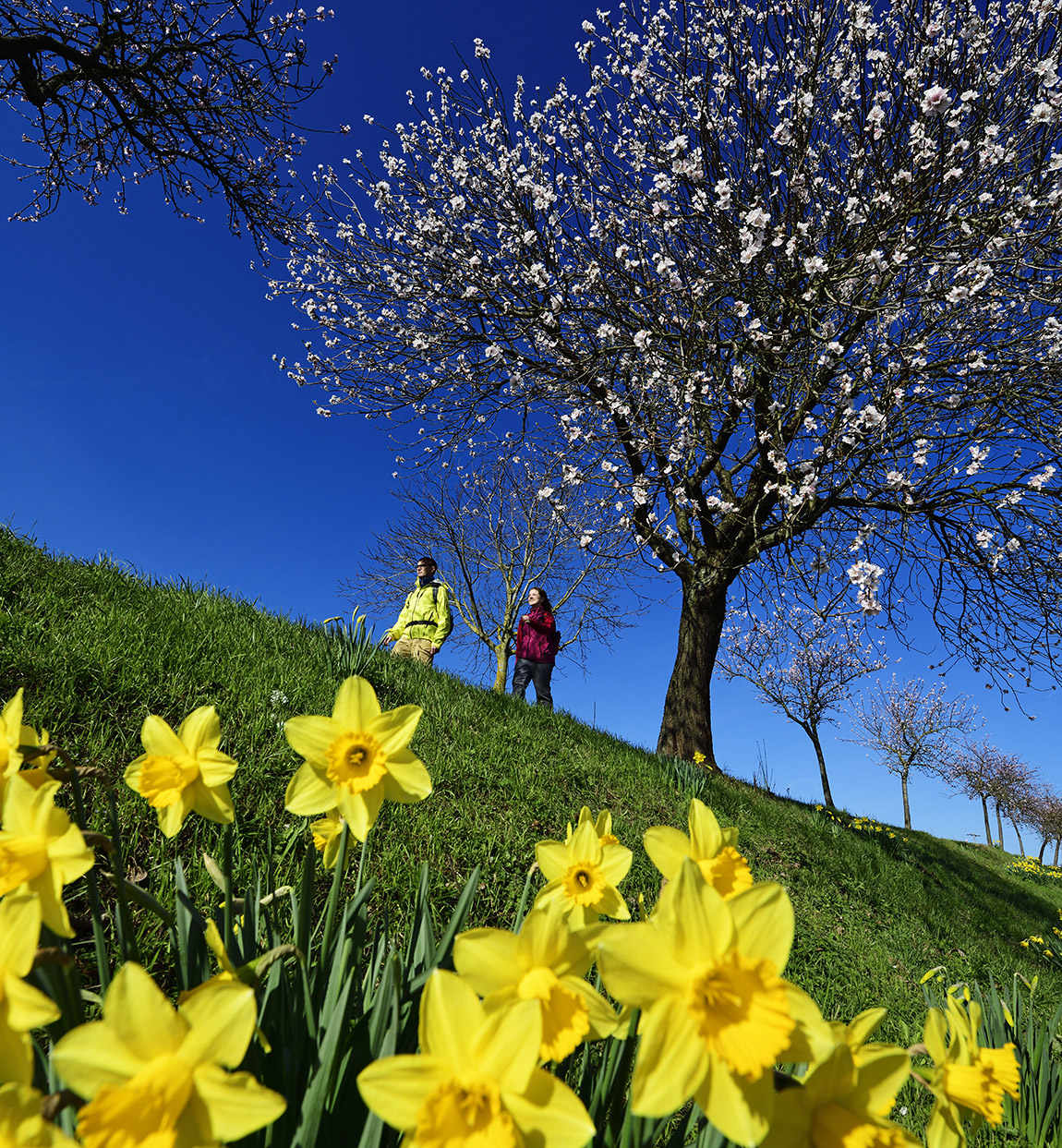 Cyclists stop and stick their noses into the treetops, sniffing intensively at the flowers. Hikers stumble from tree to tree in a daze with a permanent grin. Countless selfies are taken. This is guaranteed to be one of the “most Instagrammable spots” in Germany – especially at this time of year, in the middle of March.