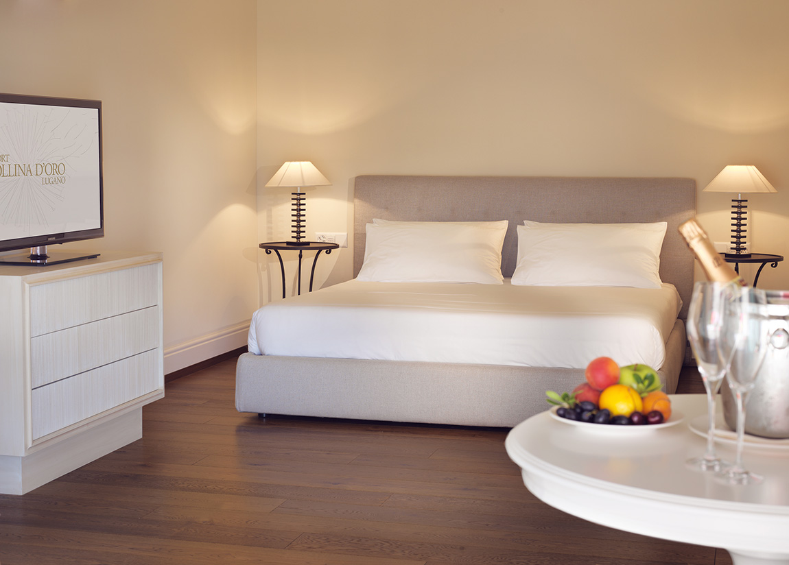 Das Resort Collina d’Oro liegt nur wenige Minuten vom Zentrum Luganos entfernt und bietet 46 Zimmer und Suiten verschiedener Kategorien (Junior-, Superior-, Deluxe- und Mastersuiten) sowie 12 möblierte Apartments für Langzeitgäste. Alle Zimmer sind stilvoll und mit sorgfältig ausgewählten Materialien eingerichtet: braune Eichenböden in Kombination mit cremefarbenem Mazzaro-Kalkstein in den Bädern schaffen eine warme und einladende Atmosphäre, die jeden Aufenthalt zu einem unvergesslichen Erlebnis macht.