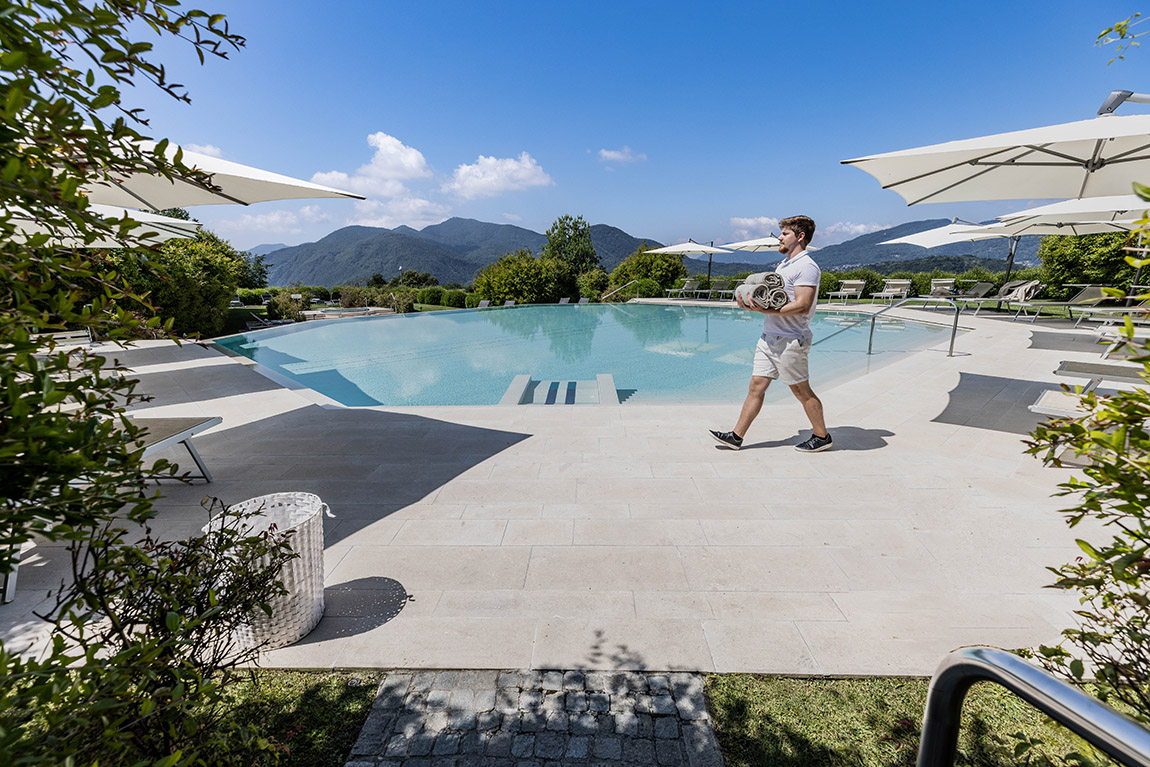 Bathed in sunshine and immersed in the greenery of hills, Resort Collina d’Oro offers comfort, charm and all the amenities that holidaymakers dream of: “Situated 520 metres above sea level in a 25-hectare natural park, the natural beauty of this place is truly breathtaking: A picture of natural beauty where the shapes and colours of the surrounding mountains merge with the pure waters of Lake Lugano”, enthuses Confalonieri.