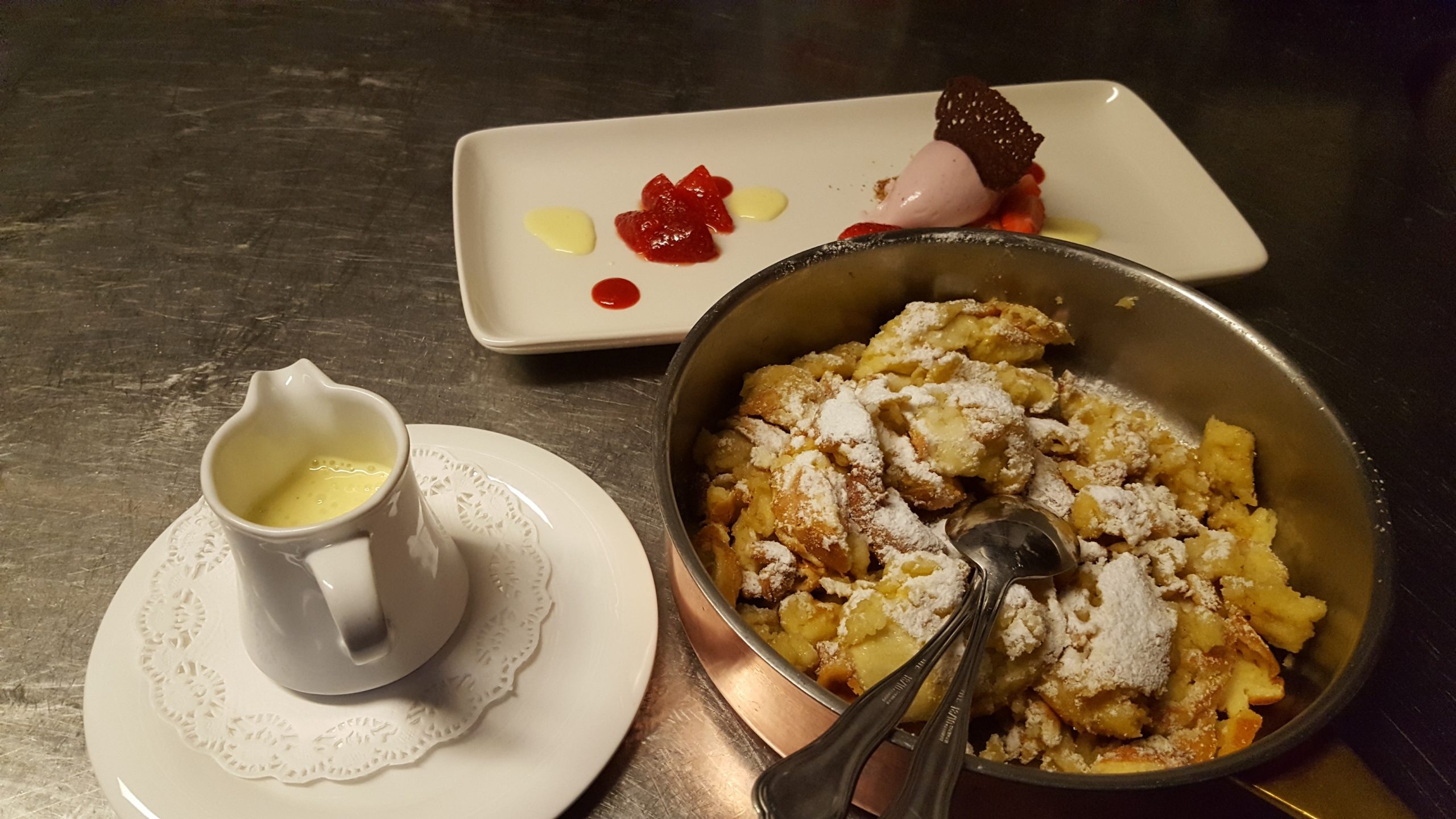 The picturesque wine village Fläsch, in the Alpine canton Grisons, in Switzerland, is already a household name for many wine connoisseurs. The restaurant Adler cements that position which Fläsch holds on the map of top gourmet locations: The South Tyrolean top chef Siggi Tschurtschenthaler combines classic and innovative South Tyrolean dishes with influences from the Grisons region. In the historic and atmospheric restaurant Adler, the young top chef Siggi Tschurtschenthaler cooks a melange that skilfully combines tradition and a modern approach with seasonal produce, like he does with the traditional ‘Kaiserschmarrn’. And in keeping with tradition, lederhosen are the chef’s personal trademark.