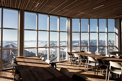 Built at an altitude of nearly 3,000 metres, restaurant Panorama 2962 offers only the best of times to its guests. “Restaurant Panorama 2962 not only stands for an outstanding panoramic view but also for excellent culinary experiences,” enthuses Steffen Korff, business director at the Bayerische Zugspitzbahn. “Panorama 2962 rounds off the all-over magnificent Zugspitze experience,” adds Korff, “as our kitchen team offers a broad range of culinary delicacies − true to the motto of ‘the best from four countries’.“