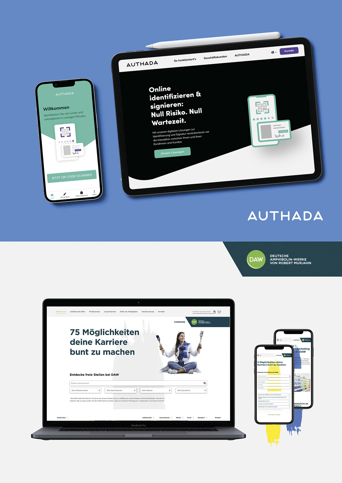 Above: Brand strategy and design for AUTHADA. Below: Employer branding and career portal for DAW.