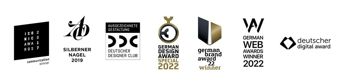 Verschiedene Awards belegen die ausgezeichnete Qualität der Agentur SCHUMACHER in den Bereichen ‚Strategie, Brand Management und Brand Creation‘.