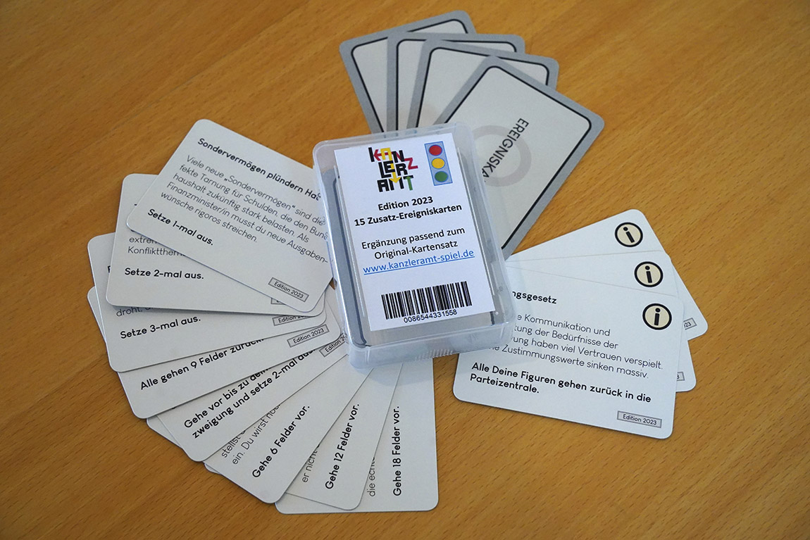 Doch wie im richtigen Leben ist der Weg dorthin steinig. Mal ist es die Inflation, die den Aufstieg verhindert, mal der NATO-Beitritt zweier Länder, der dringendes Handeln erfordert. „Das Kanzleramt-Spiel ist ein unkompliziertes Brett- und Gesellschaftsspiel, das sich am aktuellen öffentlichen und politischen Geschehen orientiert. Es regt auf spielerische Weise zur Auseinandersetzung mit dem politischen Geschehen an”, erklärt Wigger. „So werden politische Zusammenhänge und die vielfältigen Herausforderungen der politischen Arbeit greifbar.”