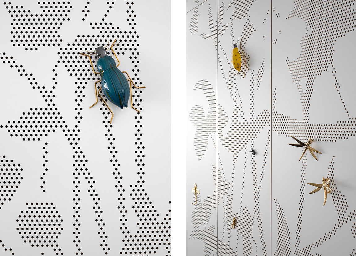 Among the highlights is a handcrafted leather rhinoceros by Omersa, standing proudly beside a wall tapestry by Ferreira de Sá (based on their own design), depicting an oversized iridescent beetle. From crustacean-shaped tools, 1930s marionettes and a porcelain cat band to carved wooden fish and elegant mussel cutlery, exploring this charming menagerie is a pure delight.